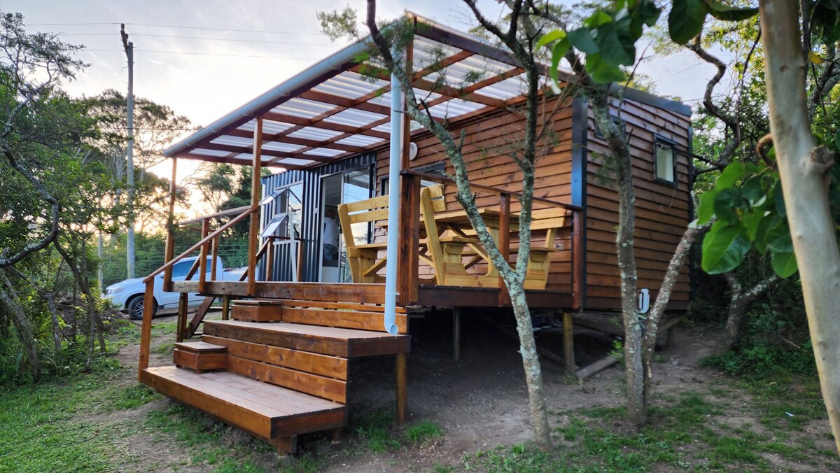 Dieses charmante Tiny House liegt nur wenige Minuten außerhalb von East London und bietet die perfekte Mischung aus Komfort und Natur. Umgeben von einheimischem Busch und mit Blick auf einen friedlichen Damm, ist es ein abgelegener Ort, der für Entspannung und Verbindung konzipiert wurde. Im Inneren findest du luxuriöse Details wie Plüschbettwäsche, eine voll ausgestattete Küche, schnelles WLAN und einen Smart-TV mit Netflix.