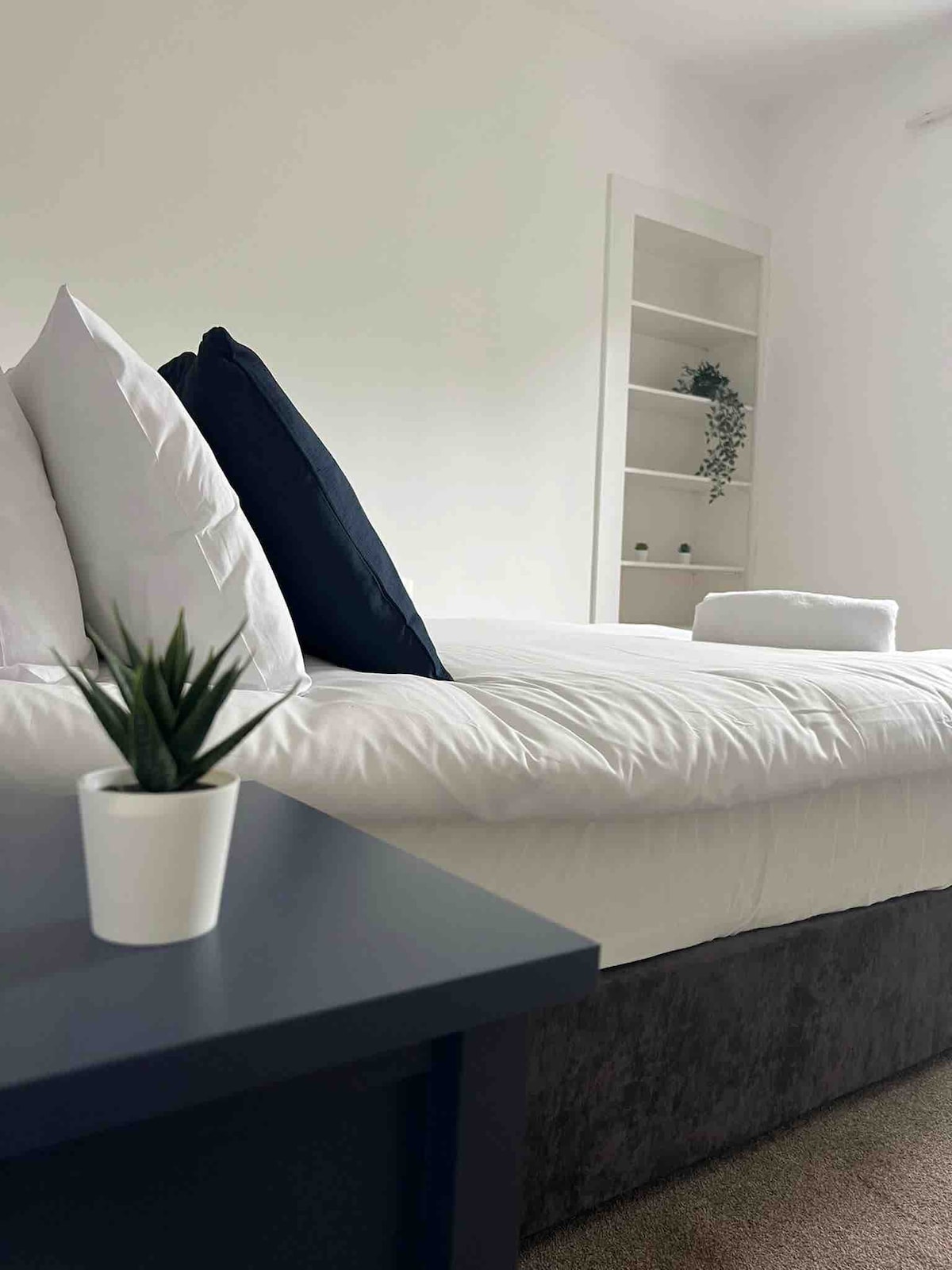 Driftwood’ is a quiet, modern , dog friendly home (max of 2 dogs ) in a private courtyard just one minute from the beach and the town centre. It's an ideal seaside holiday retreat for couples, small families, or adults on a golf trip. The main bedroom has a king size luxury bed with a special mattress ( gel , body tempera regulating memory) bed and the second bedroom has one single bed and a smaller (183CM) bed (recommended for children only) There is one free parking space at the front door.