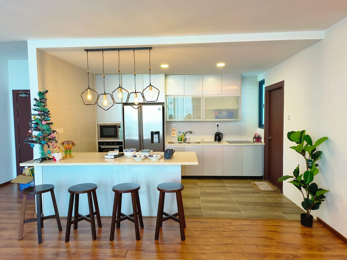 Originally our family vocation home, our place is very spacious (1700 sqft) with modern and cozy renovation consisting of full sea-view overlooking the South China Sea. It has a breath-taking sunset view! We are situated right above the most prestigious Imago shopping mall, at the heart of Kota Kinabalu, just 5-10 mins from the airport. You will have access to an international supermarket and eateries ranging from local flavors to creamy gelatos. It is perfect for families traveling together.