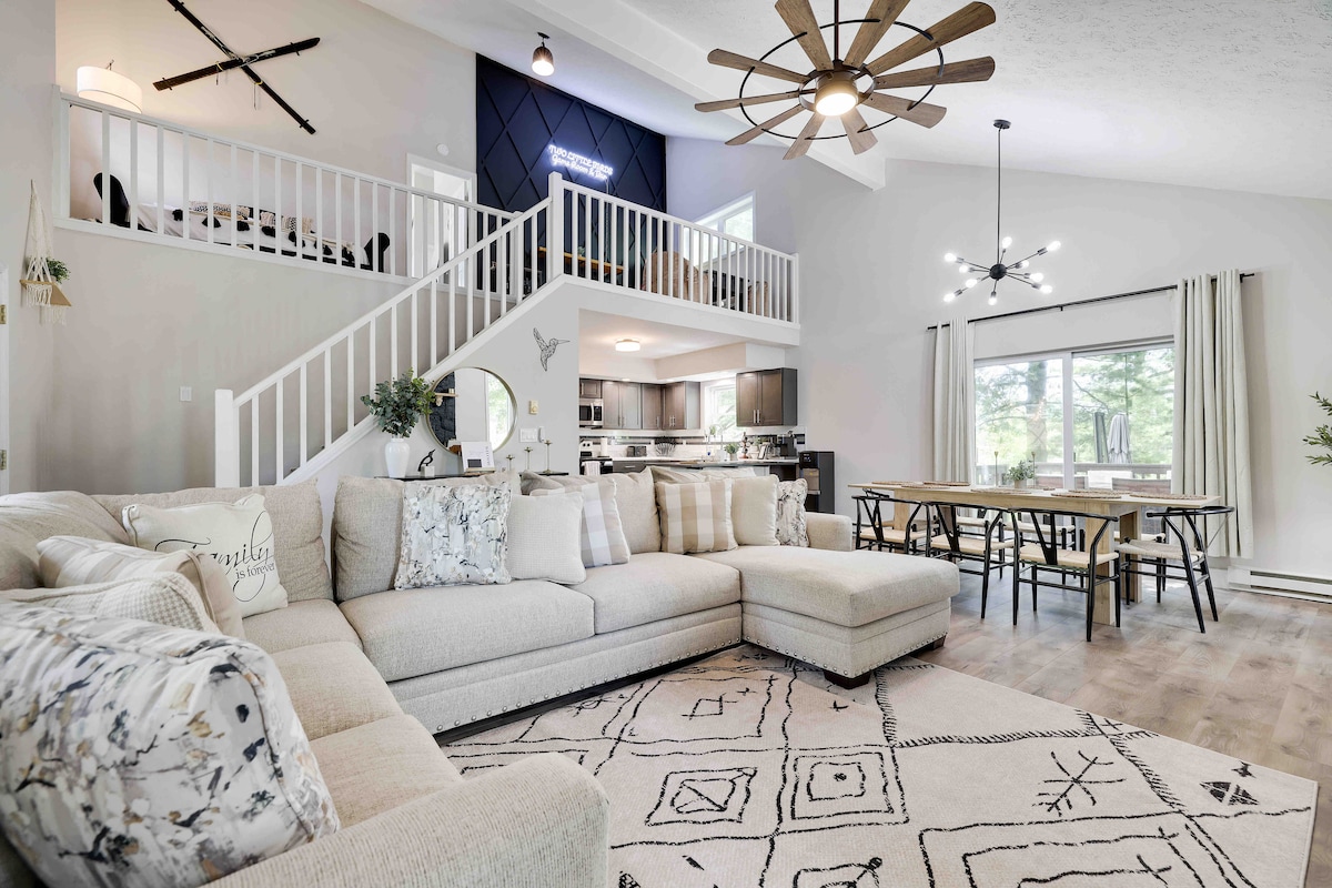Entspanne dich in dieser atemberaubenden Ferienunterkunft in Poconos. Schmelze deine Sorgen mit einem Bad im Whirlpool weg oder erlebe unsere maßgeschneiderte Sauna im finnischen Stil. Diese Unterkunft wurde durchdacht mit warmen Holzböden, handgefertigten Keramikfliesen, extra komfortablen Betten und individuellen künstlerischen Details renoviert, um ein wirklich einzigartiges und luxuriöses Gefühl zu schaffen. Entspanne dich im spa-ähnlichen Badezimmer, setze dich an die Feuerstelle oder genieße die Seen, Pools, Tennisplätze oder andere Annehmlichkeiten in der Gemeinde.