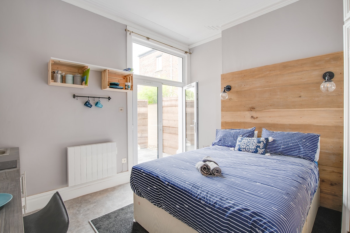 Willkommen in unserer neuen, eigenständigen Studio-Wohnung IM ERDGESCHOSS im Erdgeschoss. Viktorianisch, neu renoviert, komfortabel, privat und bietet Vielseitigkeit in Übereinstimmung mit deinen Bedürfnissen, deinem Geschäft oder deinem Vergnügen! Diese stilvolle Unterkunft bietet alles, was für einen kurzen oder langen Aufenthalt benötigt wird und einen tollen Wohnraum bietet, einen neuen Smart-TV, eine Einbauküche sowie ein großes Badezimmer/Dusche. Du bist in dieser trendigen, begehrten zentral gelegenen Gegend von Southsea ganz in der Nähe. Parkplatz. Auch andere Suiten.