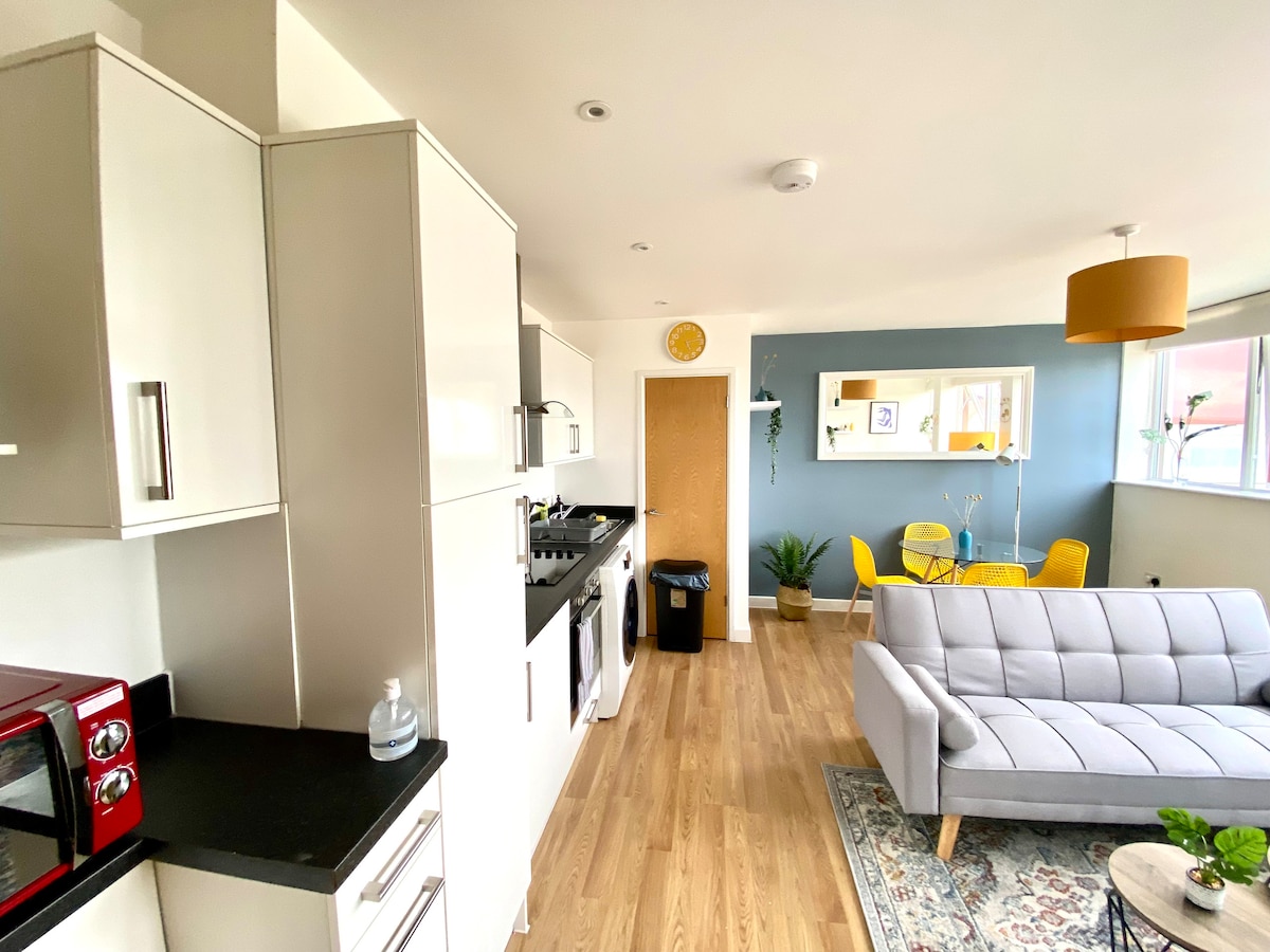 Die atemberaubende Luxuswohnung in der Innenstadt befindet sich im Herzen von Basingstoke. Mit modernen komfortablen Möbeln, einer komplett eingerichteten Küche mit Spülmaschine, Kühlschrank mit Gefrierfach und Wäschetrockner. Es gibt einen HD-Smart-TV mit Freeview, Amazon/Netflix und Web-Streaming-Diensten. Standardmäßig gibt es Highspeed-WLAN und die professionelle Ausgangsreinigung ist in allen Aufenthalten enthalten. Für Aufenthalte von mehr als 7 Nächten ist die wöchentliche Reinigung enthalten.