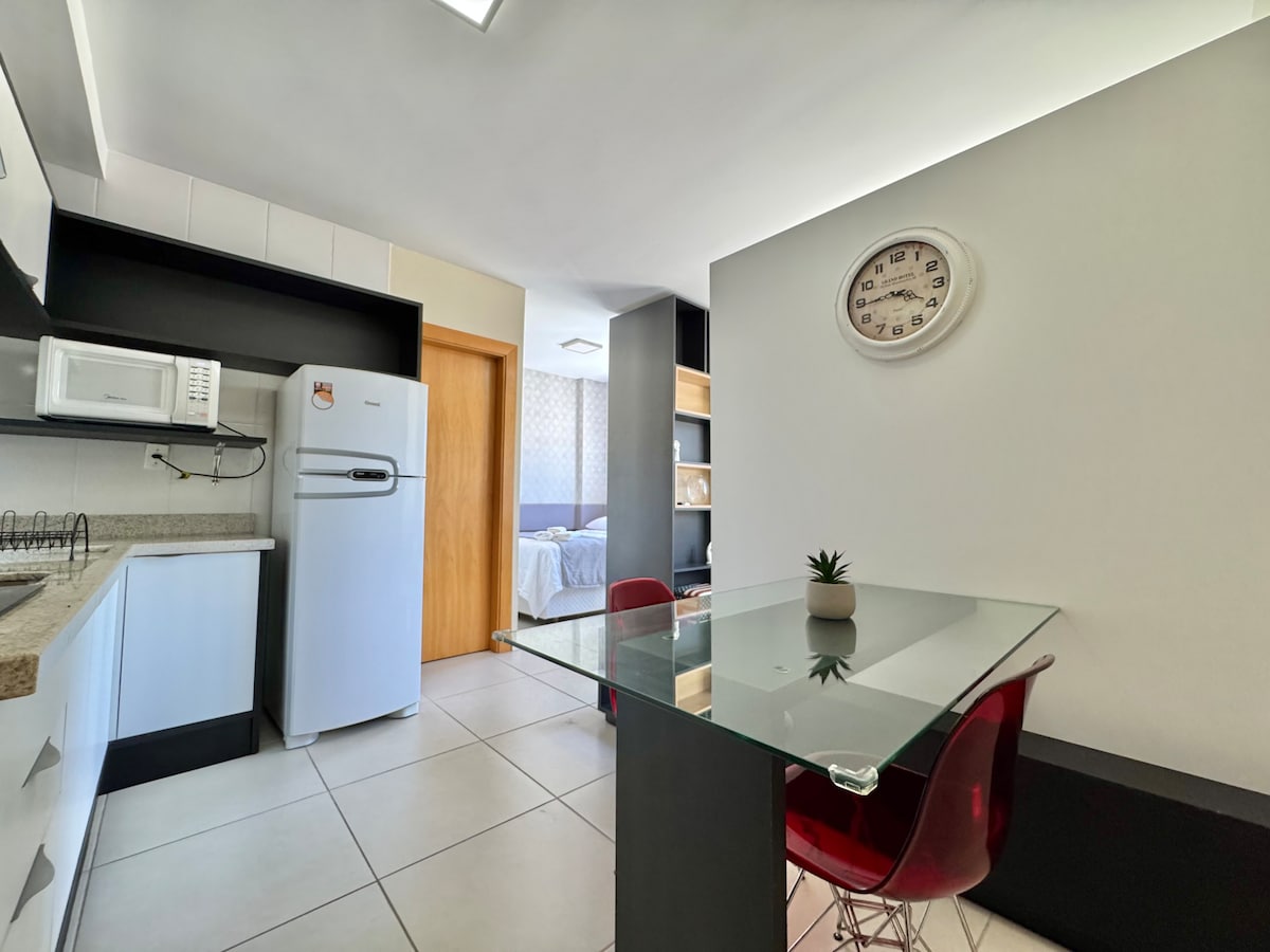 Gemütliche zentrale JK im 2. Stock, mit viel natürlichem Licht und einer ruhigen Umgebung. _ In der Nähe von Geschäften, Restaurants und Dienstleistungen – ideal für kurze oder lange Aufenthalte. _ Küche mit Kühlschrank, Mikrowelle und Utensilien, Tisch für zwei Personen. _ Sala mit Sofa, TV und WLAN. Doppelbett, Kleiderschrank und großes Badezimmer. _ Klimaanlage, Aufzug und überdachter Parkplatz für mittelgroße Autos.