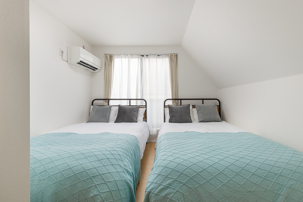 一軒家のゲストルーム。当物件は、葛西駅から徒歩10分。ディズニーリゾートは車で約12分。東京駅も電車で約20分なのでアクセスが大変よい立地です。家族や友人と泊まれるファミリータイプの一軒家は110㎡あり、部屋も4部屋(寝室3部屋・リビングルーム&キッチン1部屋)あります。 『家族・友人に喜ばれる家』をコンセプトにしており、広々とした空間で、最新の家具家電(TV、冷蔵庫、電子レンジ、洗濯機、乾燥機、掃除機、ドライヤーはすべて新品)が完備された一軒家なので、長期間宿泊される旅行者にも自宅のようにくつろいでいただける空間を提供いたします。ベビーカーも無料で貸し出ししています。 最新高速Wi-fiも完備しておりますのでワーケーションとしてもご利用可能です。駅近の物件ですが「自然豊かな環境」を感じさせます。 葛西は葛西臨海公園など自然溢れる東京を楽しむことができます。成田空港、羽田空港からバスが直通で繋がっているのでとても便利です。 東京の観光スポットである新宿や渋谷、浅草、ディズニーリゾートもアクセスしやすい立地ですが夜はゆっくり家族・友人との時間をまったりと過ごすことが静かな環境です。