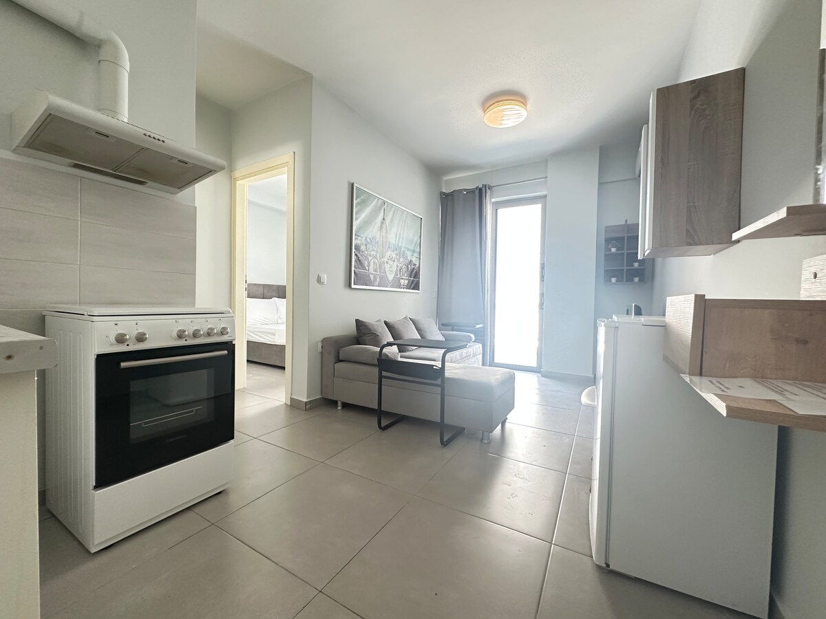 Die Wohnung ist im Zentrum von Piräus und neben dem Hafen gelegen. U-Bahn, Flughafenverbindung, Fähren, Züge, S-Bahnen, Busbahnhof und Straßenbahn alle im Umkreis von 100 Metern. Zentrale Lage!! Die Wohnung, in der du übernachten wirst, ist nagelneu und komplett renoviert mit 2 kleinen Schlafzimmern, Küche, Wohnzimmer, 45 Quadratmeter mit hohem Standard und von einem ausgezeichneten Architekten entworfen. Befindet sich im 5. Stock. Es ist komfortabel und luxuriös, um deinen Aufenthalt unvergesslich zu machen!