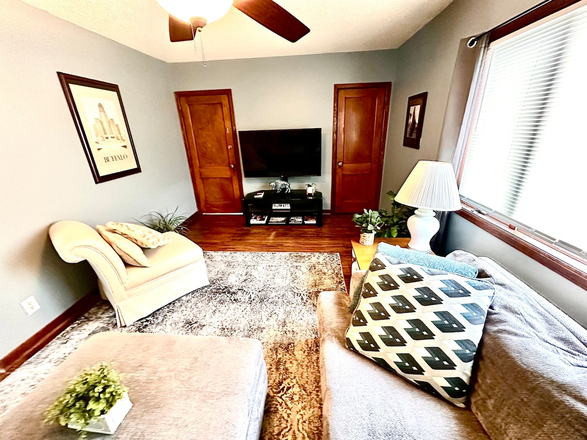 Betrachte dieses Haus als dein zweites Zuhause, während du Buffalo besuchst. Diese aktualisierte Unterkunft in einem ruhigen Viertel nördlich der Stadt liegt zentral zu Buffalo, Niagarafällen und allem, was New York zu bieten hat. Diese entzückende Unterkunft verfügt über 2 Schlafzimmer mit Queensize-Betten für 4 Personen + 2 voll ausgestattete Badezimmer und einen Remote-Arbeitsbereich. Voll ausgestattete Küche, WLAN und genügend Parkplätze. Mit Annehmlichkeiten wie Klimaanlage, WLAN und einer Waschmaschine werden sich die Gäste wie zuhause fühlen.
