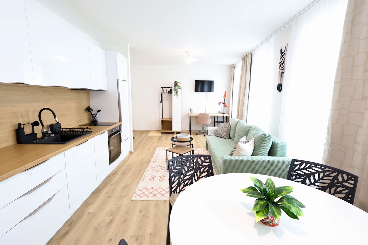Willkommen in der St. Antoni Suite 5 in Eisenstadt – deinem idealen Rückzugsort für eine entspannte oder produktive Auszeit. Die Suite kombiniert modernen Komfort mit gemütlichem Ambiente und ist perfekt für private oder geschäftliche Aufenthalte. Zentral gelegen, kannst du die Stadt bequem zu Fuß erkunden, während du dich auf hochwertige Ausstattung und eine einladende Atmosphäre freuen kannst. Für zusätzlichen Komfort steht dir ein kostenloser Parkplatz zur Verfügung.