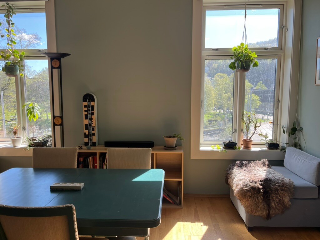 Große, geräumige Loft-Wohnung. Ungestört. 5 Meter bis zur Decke. Großes Wohnzimmer, separater Essbereich. 1 großes Schlafzimmer mit Doppelbett und einem ausklappbaren Sofa für 2 Personen. 1 Schlafzimmer mit Etagenbetten für 2 Personen. Separater Bereich auf Ebene 2 mit einem Doppelbett. Balkon mit Sitzgelegenheiten. Tolle Aussicht. Sehr zentrale Lage mit 4 Buslinien vor der Tür. Hauptbusbahnhof 1 Haltestelle entfernt. Hauptbahnhof (Oslo S) 2 Haltestellen entfernt. Kostenlose Garage (muss gebucht werden). Nur private Eigentumswohnungen. Bitte leise ein- und ausgehen, Nachbar:innen respektieren.