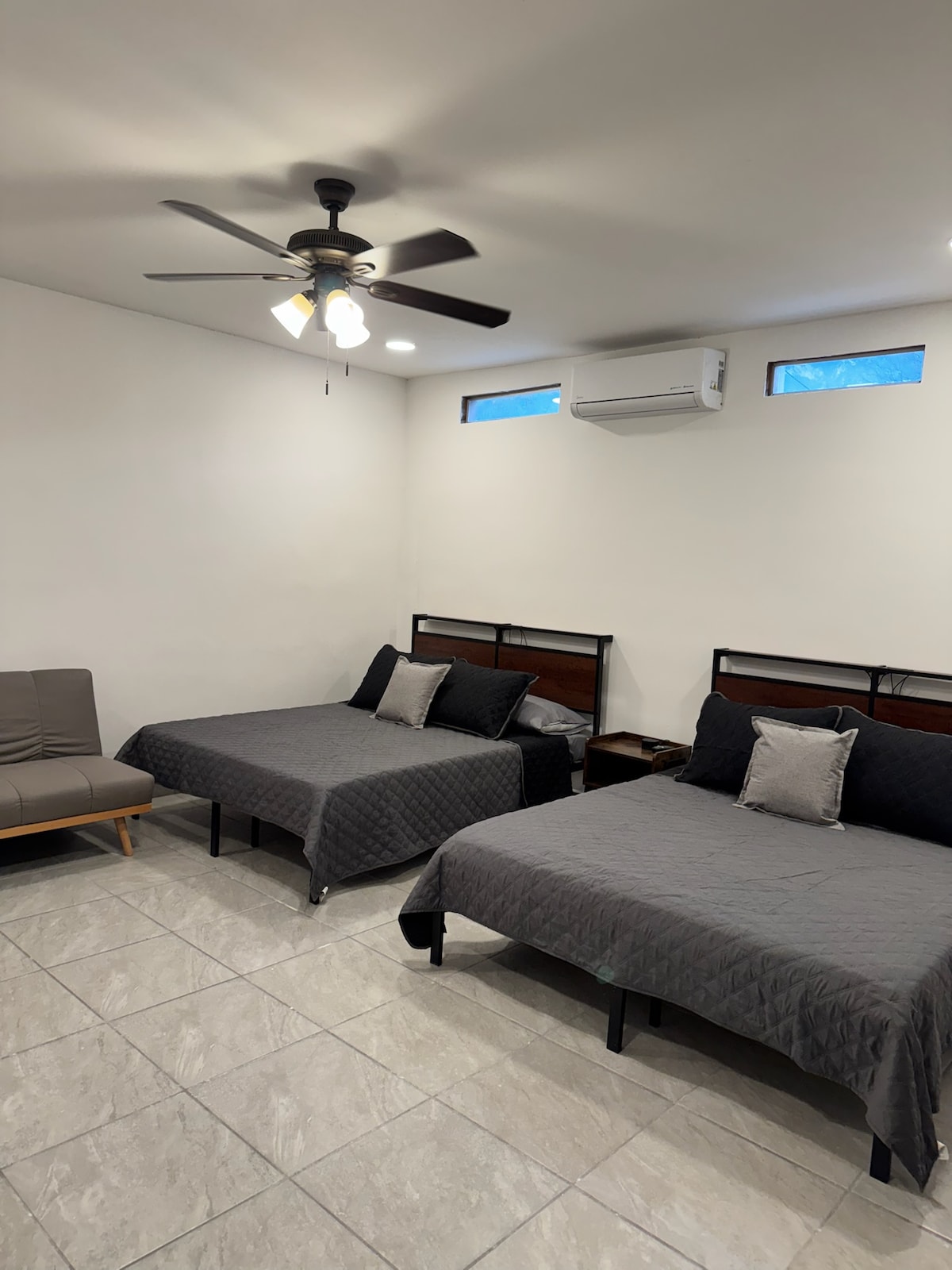 Geräumige und neu renovierte Wohnung in einer sehr ruhigen Gegend von Santa Catarina, mit großen Gärten, Pool und Fitnessraum. In einer Wohnanlage mit eigenem Eingang, im Erdgeschoss, ohne Stufen. Sie verfügt über ein geräumiges Badezimmer und einen begehbaren Kleiderschrank sowie eine Terrasse mit Blick auf die Gärten. Das Schlafzimmer verfügt über ein Kingsize-Bett und einen 42-Zoll-Fernseher. Das Wohnzimmer verfügt über ein Schlafsofa und einen 65-Zoll-Fernseher. Es gibt eine Waschmaschine, Mikrowelle, Kaffeemaschine, Backofen, Kühlschrank und Küchenutensilien. 10 Minuten vom La Huasteca Park und dem amerikanischen Konsulat entfernt.
