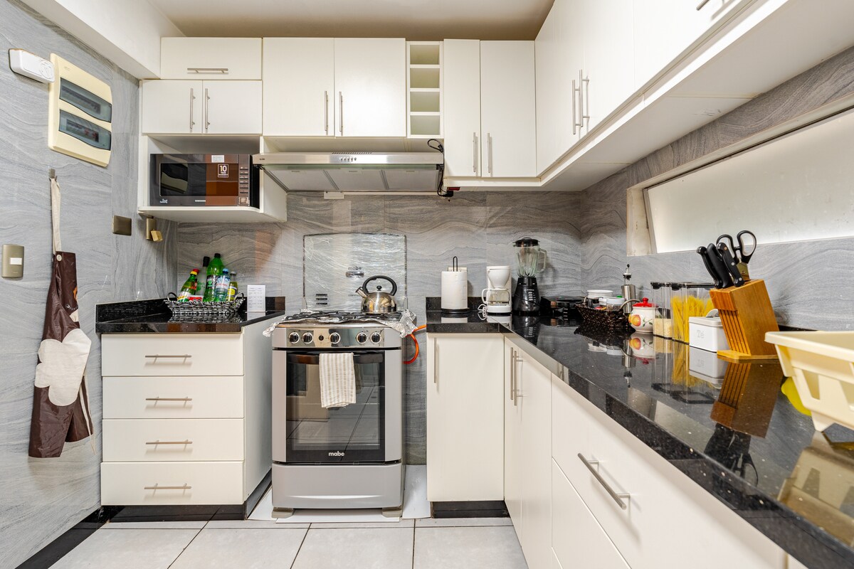 Entdecke Luxus und Komfort in unserer anspruchsvollen Wohnung, ideal für deinen nächsten Kurzurlaub. In einer lebendigen Gegend gelegen, nur wenige Schritte von den wichtigsten Einkaufszentren, Restaurants, Geschäften, Boutiquen und Landterminals der Stadt entfernt, bietet dieser Raum ein modernes und einladendes Design. Perfekt für Paare, Geschäftsreisen, Zwischenstopps oder diejenigen, die einen eleganten Rückzugsort in der Stadt suchen! Wir befinden uns nur 8 Minuten vom neuen Flughafen Jorge Chavez entfernt!