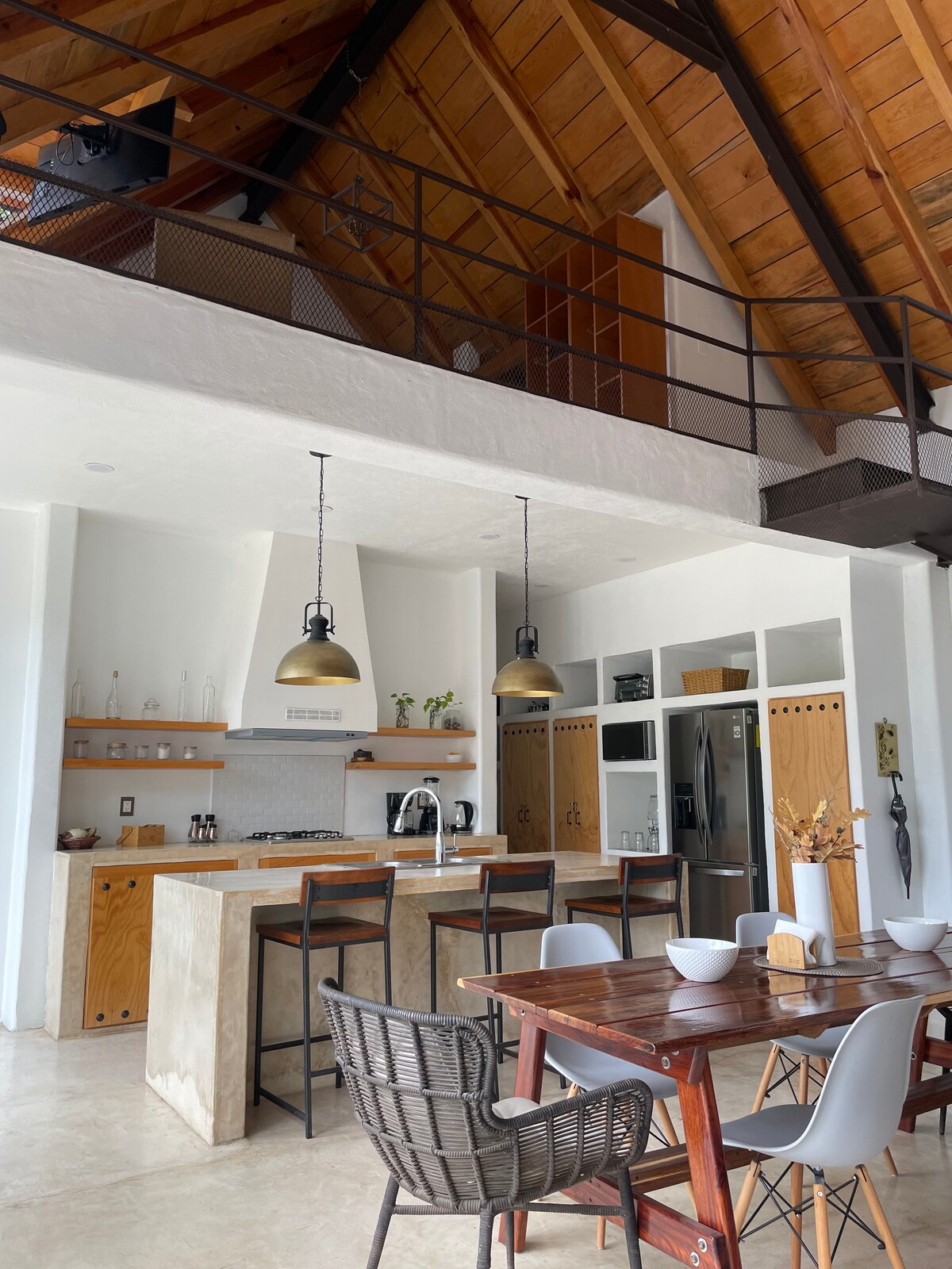 La Lima ist eine minimalistische Hütte von 60 Quadratmetern, die sich im malerischen und kleinen Dorf El Remudadero, Comala, befindet, wo Ruhe und Verbindung mit der Natur die Protagonisten sind. Dieses moderne Loft zeichnet sich durch sein zeitgemäßes Design aus, das eine minimalistische Ästhetik umfasst, überflüssige Elemente eliminiert und sich auf Funktionalität und Komfort konzentriert. Beim Überschreiten der Schwelle von La Lima werden die Besucher von einem Wohn-Esszimmer und einer doppelthohen Küche empfangen. Grün leben