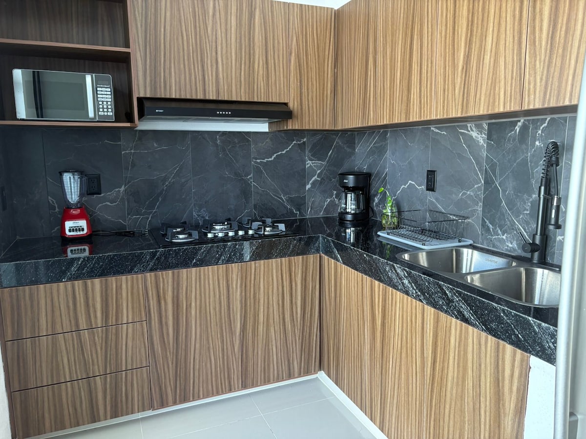 Erlebe das Erlebnis, in einer neuen Wohnung in der schönsten Wohngegend von Colima zu übernachten, in einer privaten Umgebung, mit herausragender Architektur, geräumigen, frischen und belüfteten Räumen mit allem Komfort. Diese Unterkunft ist zentral gelegen, um die besten Restaurants der Stadt zu besuchen. Straße nicht sehr belebt und gleichzeitig super nah an den Hauptstraßen.