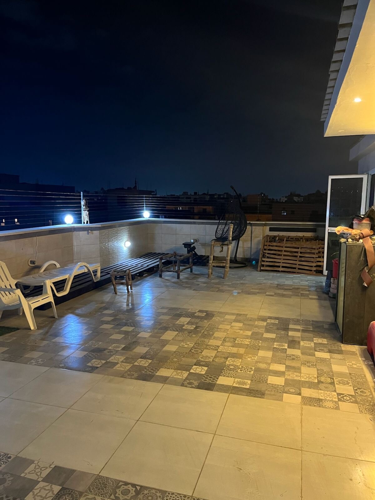 Elegant Studio with Large Terrace & Panoramic View – Maadi Degla Elegant and bright studio in Maadi Degla, filled with natural light from all directions. The 100 sqm studio features a large private terrace with a beautiful panoramic green view. Fully furnished and equipped with a complete kitchen, stove, microwave, dining table, and chairs. Located in a quiet and green area, surrounded by trees and close to all services: Restaurants and cafés within 5 misnutes Includes high-speed Wi-Fi,