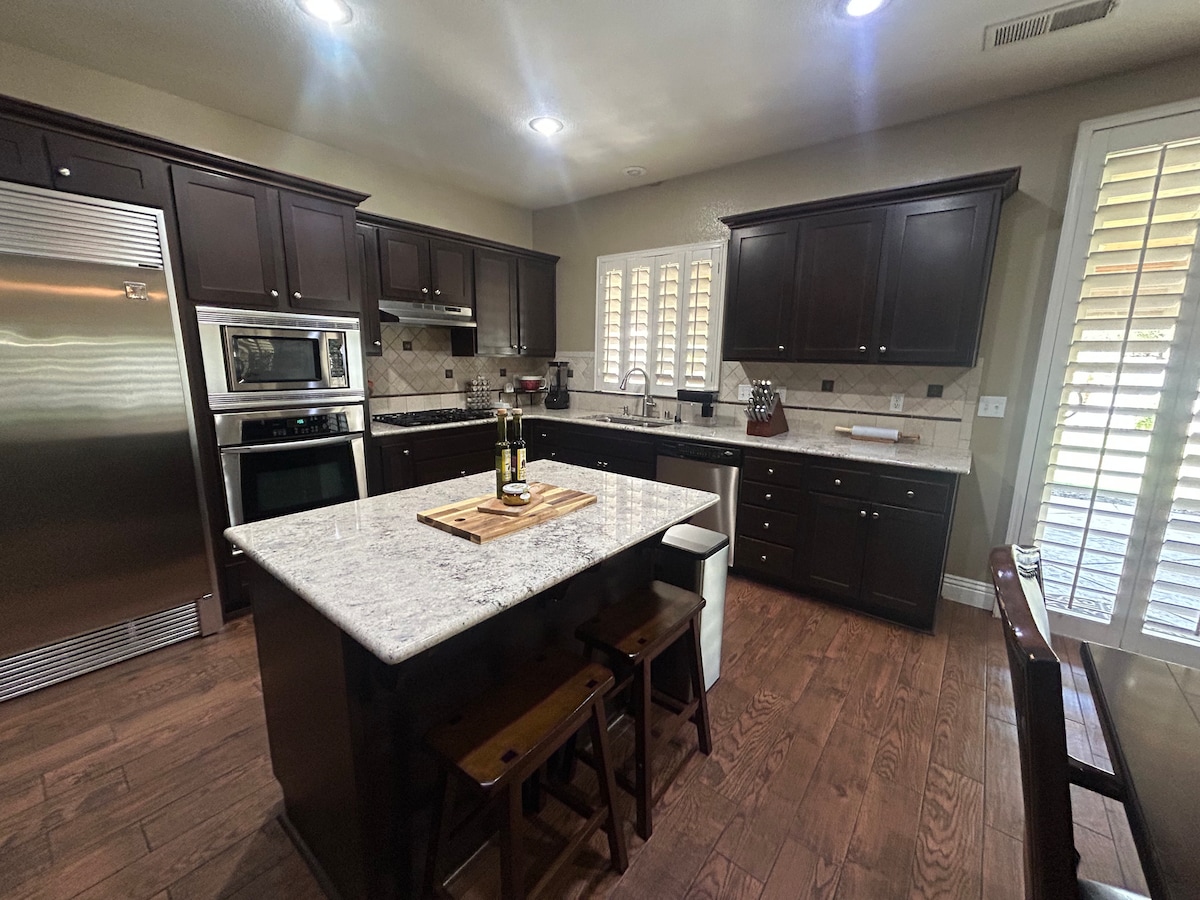 Welcome to our home, Enjoy: - 75" 4K Roku TV with Netflix, Prime, Hulu, Disney+ - 1 queen bed and 1 sleeper sofa (queen size) - Luxurious rainfall shower and modern bathroom - Fully equipped, stocked and clean Kitchen - Washer Dryer - Dedicated, Fast and secure WiFi (300 Mbps) - Dedicated Workspace - Self-check-in - Spacious closets - Steamer, Hairdryer, sanitizers - Dimmable warm lights for ambiance - Level 2 EV charger. - Convenient location near ECRMC, and shopping stores.