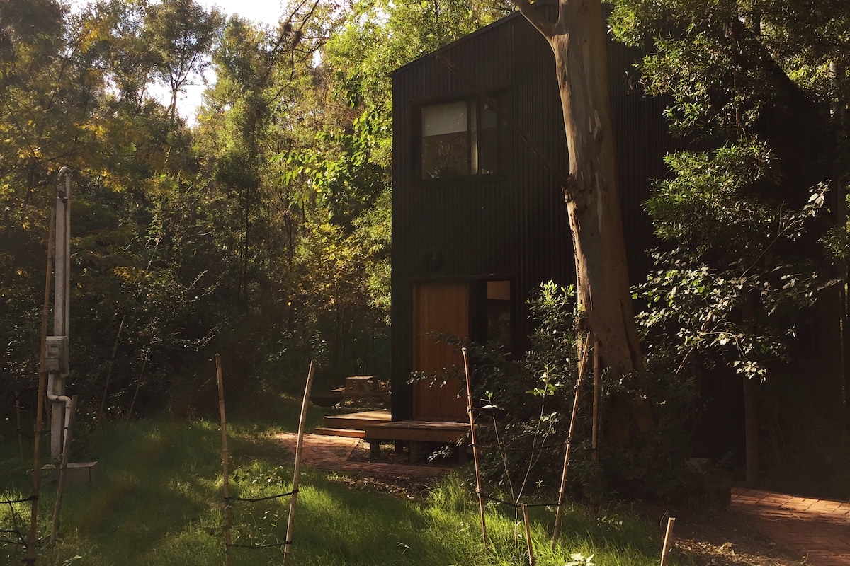 Casa en bosque de eucaliptos; un espacio creado para conectar con el entorno. Mucha paz y aire puro. La casa es un ambiente integrado, amplio y cómodo, con baño completo con ducha, cocina totalmente equipada, y elementos para cocinar en el exterior en una amplia parrilla. Tiene 2 decks exteriores sumergidos en el bosque, que ofrece aromas, sonidos y luces: un ambiente mágico y de reposo absoluto.