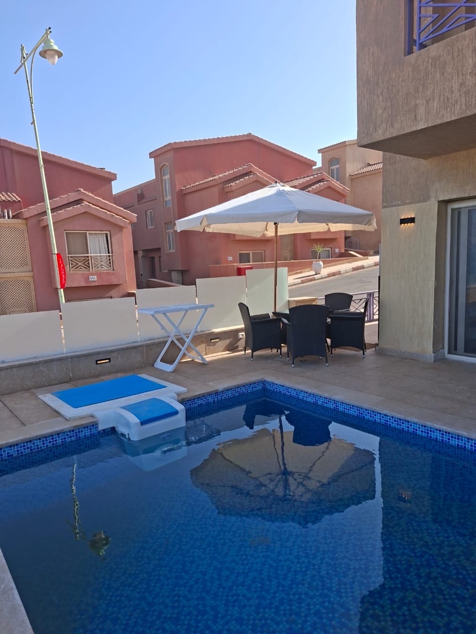 private villa at Il Monte Galala 3 rooms 3 bathrooms private garden and The upper floor features a balcony with stunning views of the sea and the lagoon. free WIFI free parking free electric car charging station private roof with sea & lagoon view up to 7 adults Please read before booking: • According to the rules of El Monte Galala : • Only families, ladies only, husbands, or one single man are accepted • Mixed groups are not allowed • Resort fees: • $22 (1000 EGP) per adult for the