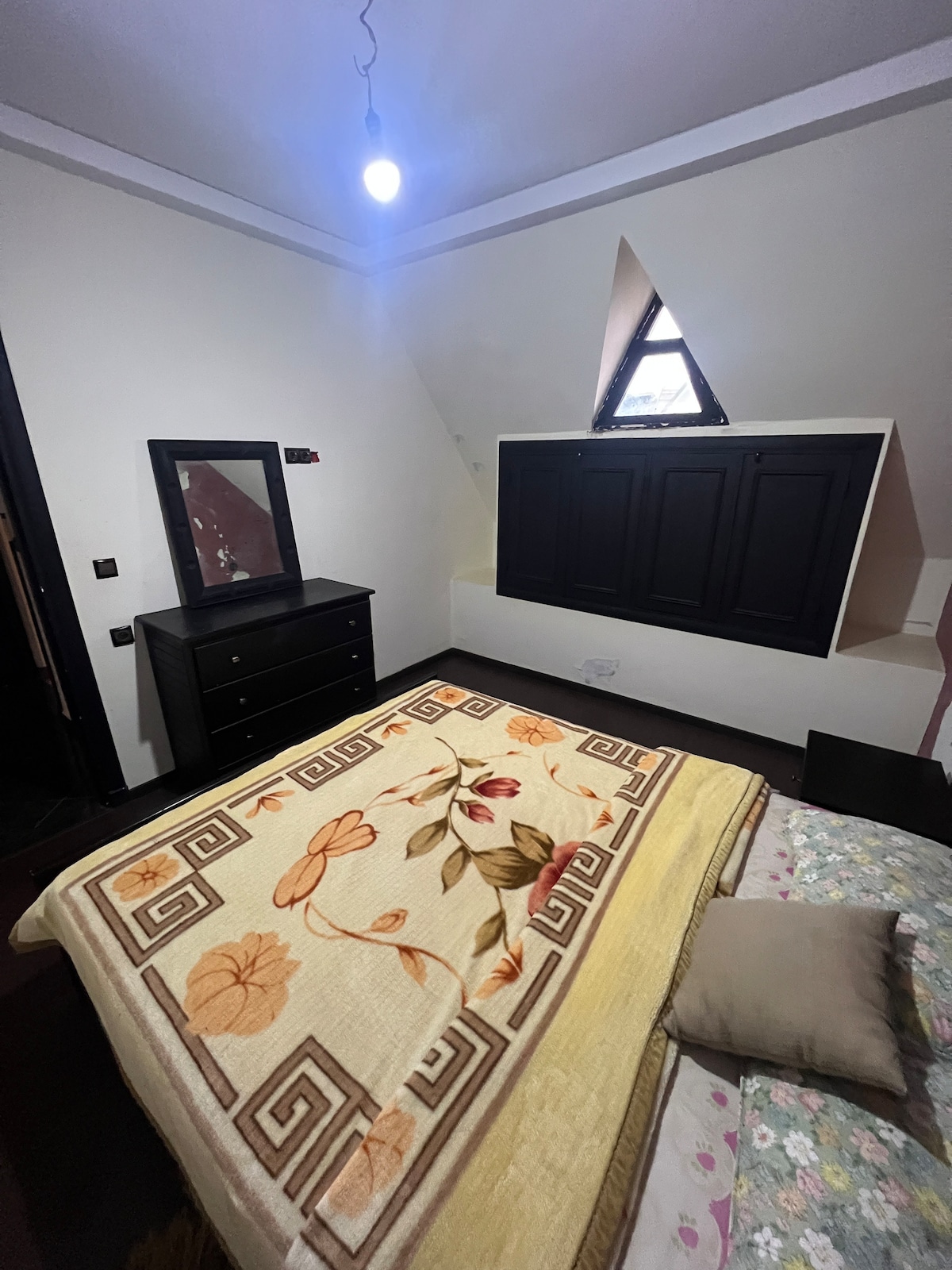 Private, cozy, and spacious first floor of a villa located in the upscale center of Ifrane. The villa features one master bedroom ideal for a couple, along with 2 additional living areas that can comfortably accommodate up to 4 more extra guests. The space is heated with a wood stove and electric oil filled heaters, ensuring warmth and comfort. There is also a fully equipped big kitchen, shower, hot water, TV, and Wi-Fi.