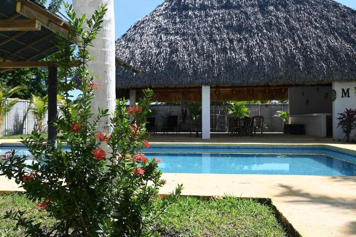 Einfacher Strandurlaub in Monterrico, nur wenige Schritte vom Meer entfernt. Das Haus hat nur die Grundlagen. Es verfügt über 4 Queensize-Betten, Tisch und Stühle, einen großen Gemeinschaftsbereich, einen Swimmingpool, Wasser, Strom, 2 Badezimmer und ein drittes ohne Dusche, ausreichend Parkplätze und einen Grill. Es gibt keine Klimaanlage oder Kühlschrank. Super 24 Front für Getränke und Snacks. Ideal zum Entspannen, Genießen der Meeresbrise und Teilen mit Familie oder Freunden. Das Haus ist komplett für dich. Mit niemandem geteilt.