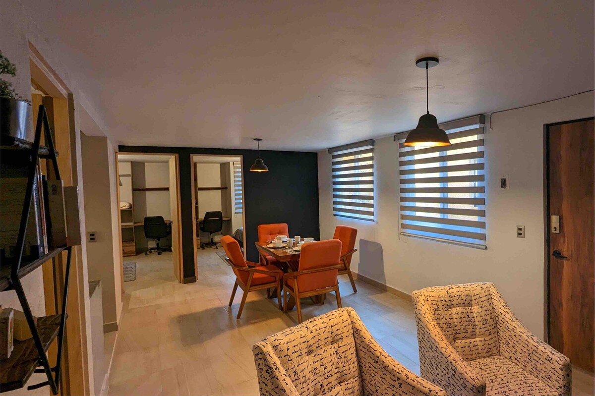 ‼️FAVOR DE RESPETAR HORARIOS DE SILENCIO 🔇 Entre semana 10:00 pm Fines de semana y días festivos 12:00 am. 🚫 En caso de no respetar los horarios de silencio se cancelará tu reservación SIN REMBOLSO🚫 Hospédate en el corazón de Querétaro, en una de las mejores zonas de la ciudad. 🌃 Cerca de restaurantes, plazas, cafés, bares, parques y gimnasios. ☕️🏋🏻♂️🌳🐕 2 min de Parque Álamos 5 min de los Arcos 10 min del Centro Histórico. 📍