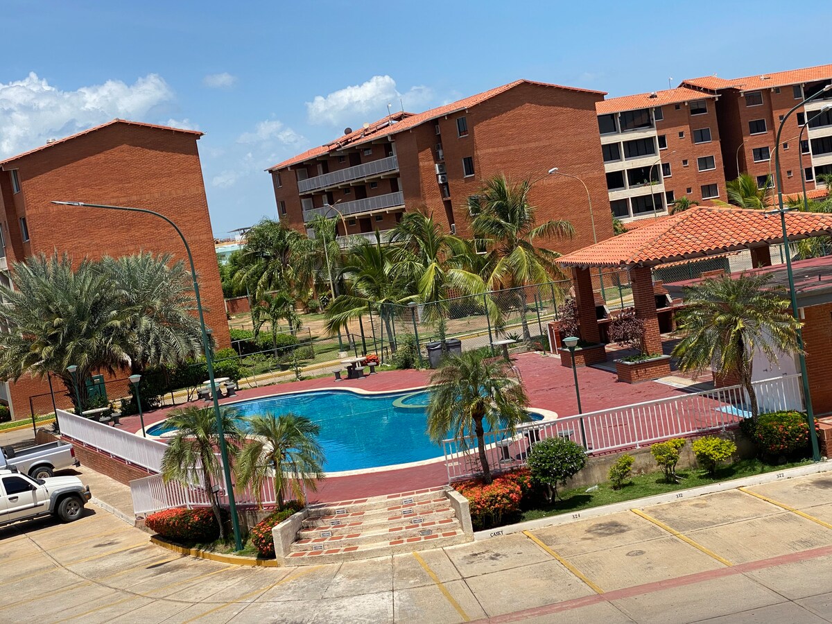 Schöner Ort, geräumig und ruhig, mit einer privilegierten Lage im touristischen Komplex El Morro in Lechería. Duplex-Wohnung, komfortabel, ruhig und sicher. Sie verfügt über 3 Schlafzimmer, jedes mit Kabel-TV, 2 Badezimmer, ein Wohnzimmer mit Kabel-TV und Internet, 2 zentrale Klimaanlagen, 24-Stunden-Wasser, eine ausgestattete Küche, ein geräumiges Wohnzimmer, eine Terrasse mit Grill, große Grünflächen, einen Pool und einen Pavillon. Sie verfügt über einen eigenen Parkplatz und einen für Besucher. WLAN 5G.