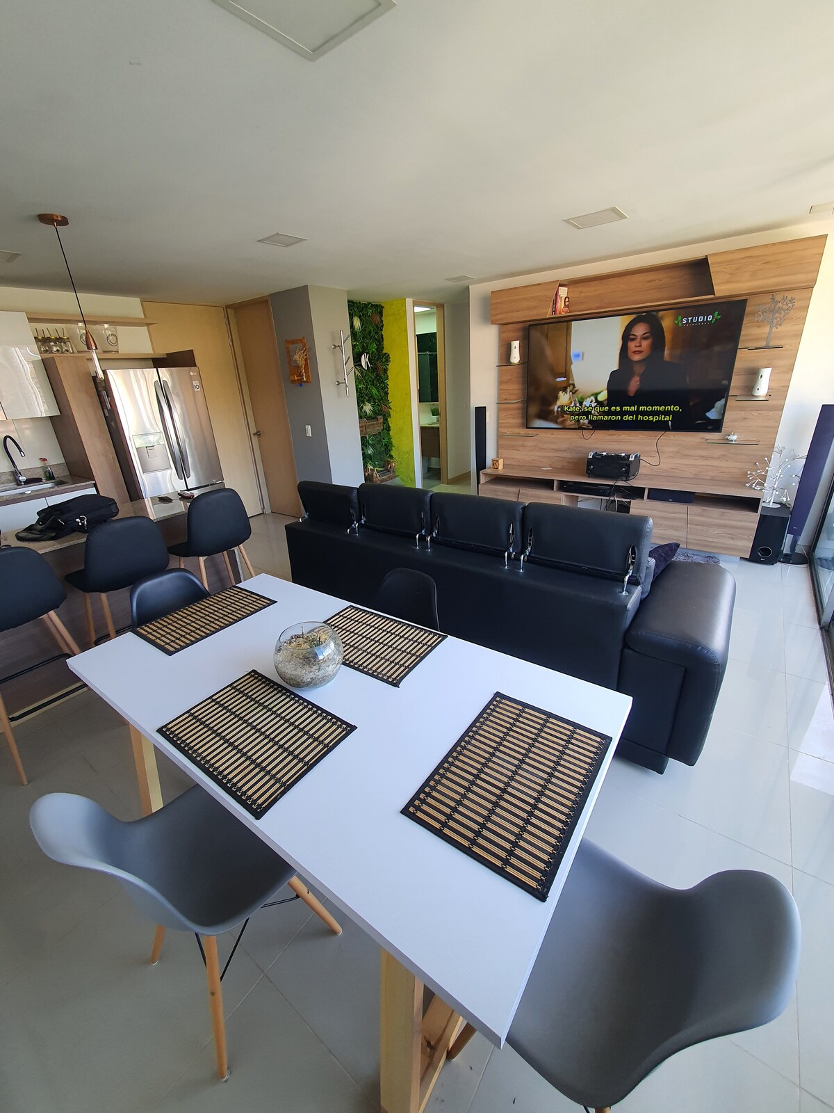 Genieße ein stilvolles Erlebnis in dieser Unterkunft in einer exklusiven Gegend von Medellín mit einem spektakulären Blick auf die Stadt von einem 30. Stock, in einer geschlossenen Einheit mit 24-Stunden-Überwachung. Die Unterkunft verfügt über Swimmingpools von Erwachsenen und Kindern, einen türkischen Fitnessraum , einen Fitnessraum, grüne Wanderwege, Spielplätze, Spielplätze, Platz usw. Das Apartment ist zu 100 % eingerichtet mit Luxusgeräten, 80-Zoll-Fernseher, Waschtrockner, Schnee, Wasserbrunnen, Bio-Kamin usw., nur 7 Minuten vom lleras Park entfernt.