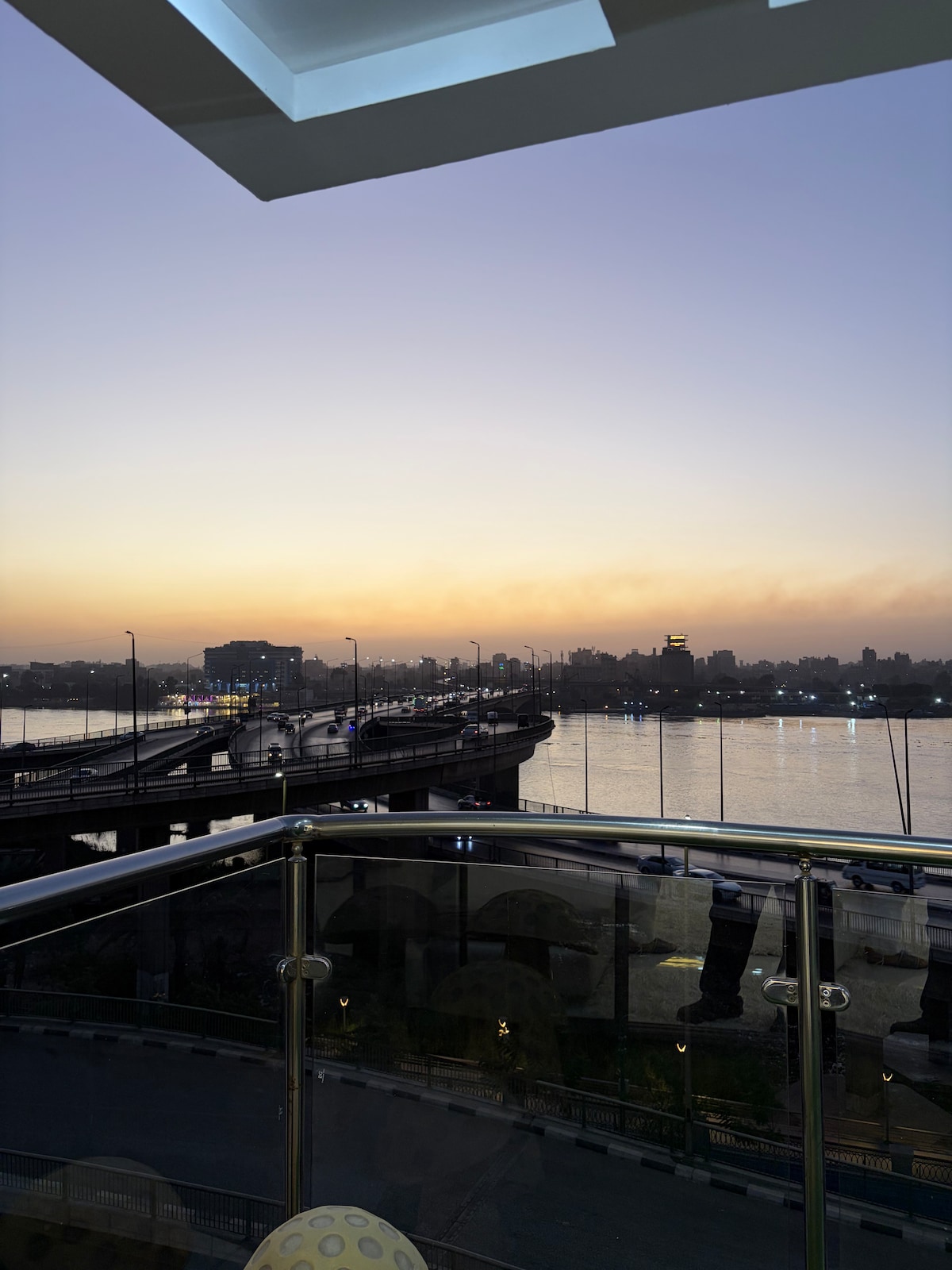 Enjoy breathtaking views of the Nile River from this modern two-bedroom apartment. Located in the heart of Cairo, this stylish space offers comfortable accommodations for couples or families. Relax on the private balcony, explore the city's vibrant culture, and experience the magic of the Nile. Easy access to public transportation Walking distance to shops, restaurants, and cafes. Book now and experience the beauty of Cairo from this stunning apartment!