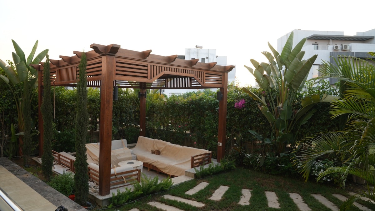 Eine GESAMTE WOHNUNG mit einem Garten auf der Rückseite in einer schönen und grünen Gegend in einer friedlich integrierten Gemeinschaft, die alle Bedürfnisse der Bewohner erfüllt. Die Zimmer sind neu eingerichtet, klimatisiert, Smart-TV und alle Annehmlichkeiten, die du benötigst, super SAUBER und RUHIG. Die Wohnung liegt 25 Minuten vom internationalen Flughafen Kairo entfernt. Cafés, Restaurants, Supermärkte und Apotheken befinden sich in der Nähe. Hotelstandard-Qualität mit heimischem Komfort zu einem ANGEMESSENEN PREIS.