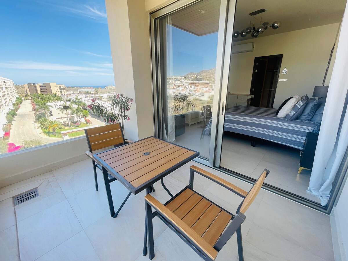 “Our stay in Cabo at this Airbnb could not had gone better! Gorgeous, cozy and comfortable.“ ✔ Enjoy our new ocean-view condo, perfect for an unforgettable vacation. ✔ Relax on the main terrace with dining area and grill, or on the private terrace in the master bedroom. ✔ Located 3 min walking from Costco, 4 min from Plaza Novva, and only 5 min driving to Medano Beach. ✔ Offers private entrance, parking, beach chairs, umbrellas, 3 bedrooms, 3 bathrooms, 4 TVs, gym, and a large pool.