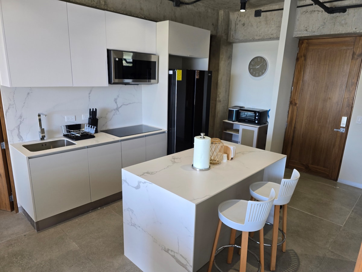 Comienza tu dia tomando una taza de café desde el balcón con vistas al océano, y luego dirígete a surfear olas de clase mundial a tan solo unos pasos. Refrescate en la piscina y termina tu dia viendo el atardecer preparando una cena en la cocina totalmente equipada o disfrutando de una pelicula. Dos acogedoras habitaciones y amplia sala con sofa cama, A/C, wifi rápido, lavadora/secadora, locker para tabla de surf. Ideal para parejas, surfistas, familias pequeñas y nómadas digitales.