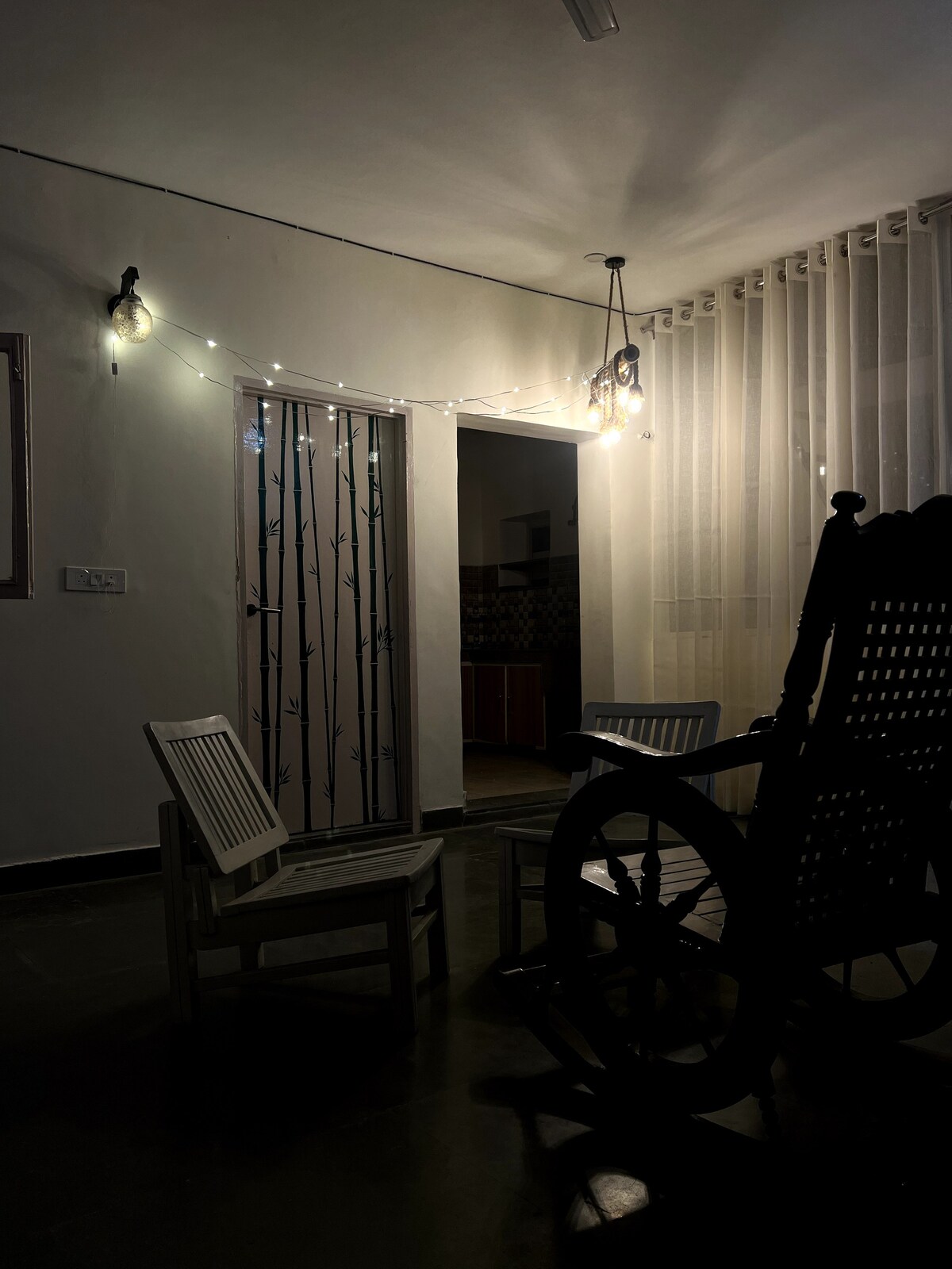 Tritt ein in einen Raum, in dem erdiger Charme auf modernen Komfort trifft. Eingebettet in ein ruhiges, familienfreundliches, umzäuntes Viertel ist die 1 BHK-Wohnung für langsames Leben, kreative Atmosphäre und herzliche Gastfreundschaft konzipiert. Die Wohnung befindet sich im 2. Stock und ist von natürlichem Licht durchtränkt und mit einer warmen Terrakotta-Palette gestaltet. Die Innenräume sind mit handgefertigtem Dekor, rustikalen Holztexturen, Vintage-Funden und originellen Kunstwerken gefüllt, damit du dich sofort wie zuhause fühlst.
