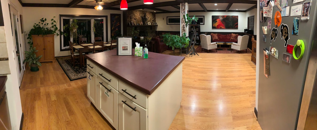 Ich heiße Menschen jeglicher Herkunft in meinem Haus mit 2 Schlafzimmern und 2 Bädern in South Boulder willkommen. Der Gästeraum ist die gesamte erste Etage. Ich nutze die Gästeeinrichtung als Galerie für meine Kunstwerke und ich hoffe, du kommst und genießt sie. Es gibt viele komfortable Räume zum Entspannen, mit einer vielseitigen Auswahl an Möbeln. Unsere ruhige Nachbarschaft liegt günstig nur wenige Kilometer von allen Hotspots und Autobahnen in der Umgebung entfernt. Kontaktiere uns bitte, falls du Fragen dazu hast. Ich freue mich darauf, dein:e Gastgeber:in zu sein!