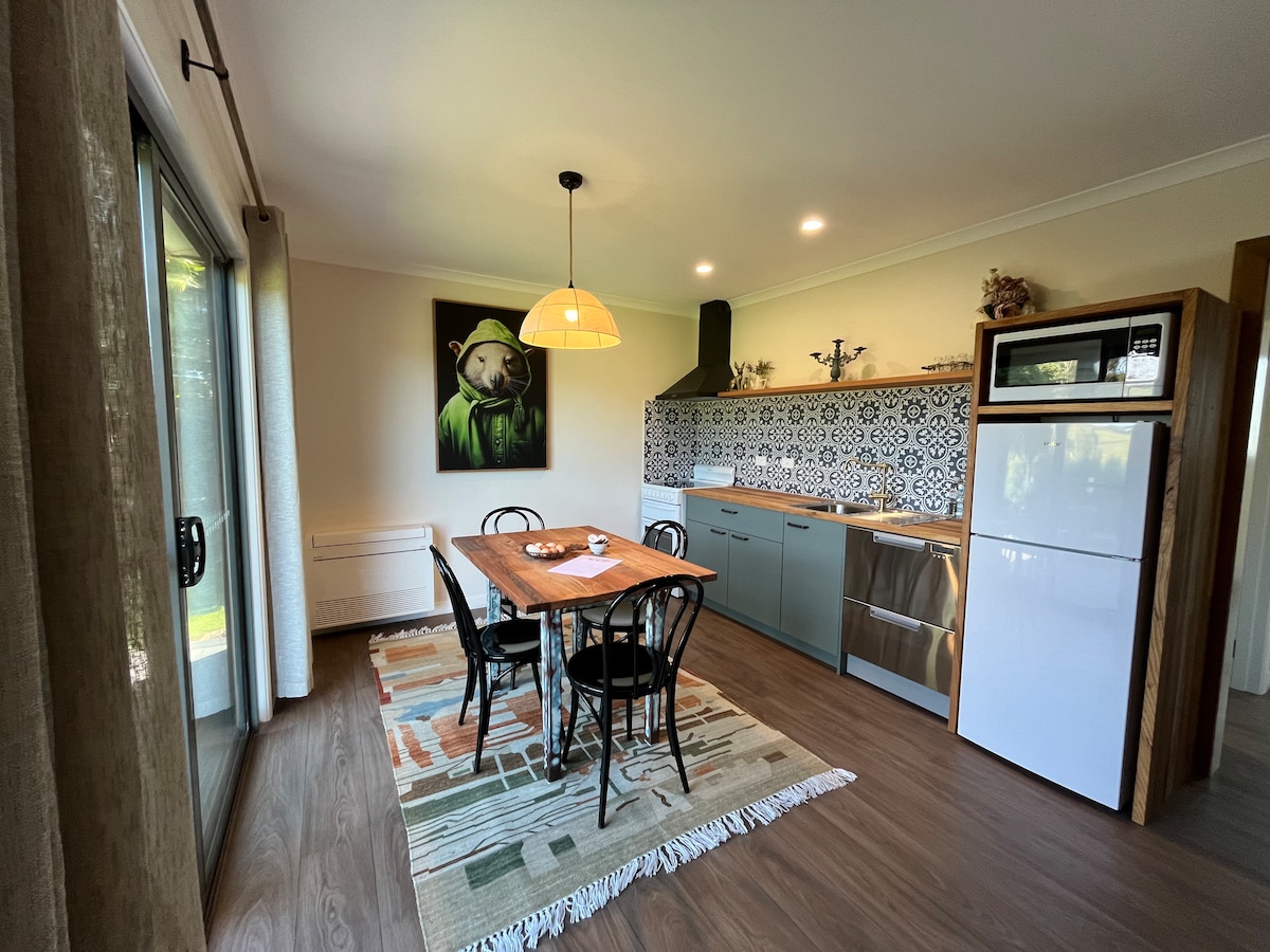 Modern, umweltfreundlich, warm und gemütlich. Das Hotel liegt in der Nähe des historischen Hauses des Gastgebers auf einem wachsenden Hobbyfarm. Tolle Aussicht auf den Mount Roland vom Hof aus. In der Nähe der Stadt Sheffield für alle deine Lebensmittelbedürfnisse, Kaffeehäuser und Restaurants. Perfekt gelegen in der Nähe von Cradle Mountain, Tasmazia, Lake Barrington und nur 20 Minuten von Devonport entfernt.