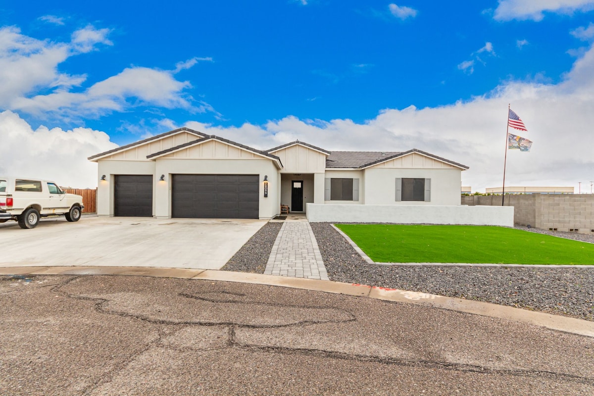 Entspanne dich in diesem stilvollen und geräumigen Haus mit 3 Schlafzimmern in Arizona City, Arizona, Arizona ! Jedes Schlafzimmer ist auf Komfort ausgelegt und verfügt über ein Kingsize-Bett sowie ein Sofa für zusätzliche Gäste - perfekt für Familien, Gruppen oder Geschäftsreisende. ✔️ Platz für bis zu acht Gäste ✔️ Voll ausgestattete Küche ✔️ Highspeed-WLAN & Smart-TVs ✔️ Ruhiges Viertel mit einfacher Autobahnanbindung ✔️ verbandskasten, Feuerverlängerung, Lagerfeuer, Grill, Brettspiele Genieße einen erholsamen Kurzurlaub mit dem gleichen Komfort wie zu Hause! zwischen Phoenix und Tucson