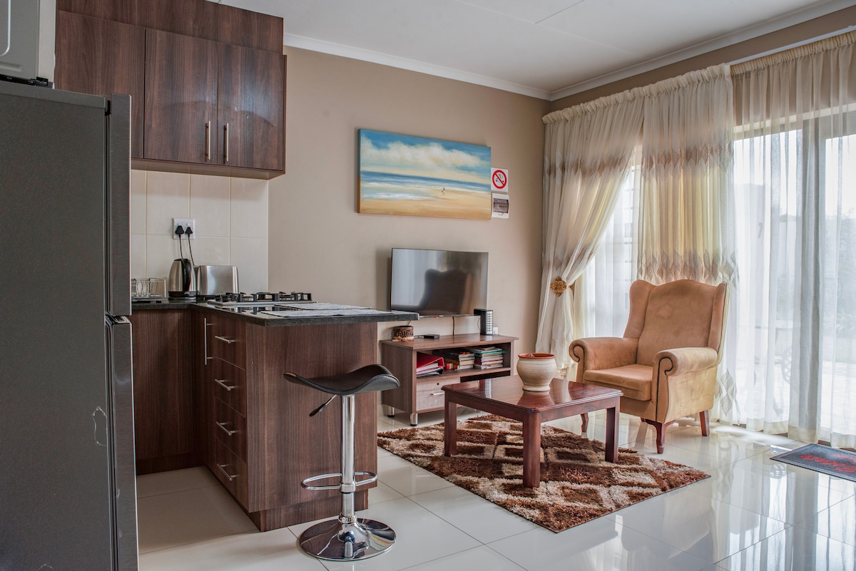 Diese atemberaubende Wohnung mit zwei Schlafzimmern steht dir und mit Familie oder Freunden zur Verfügung. SMART ACCESS SCHLÜSSELLOSES Check-in- und Check-out-System. Der Zugangscode wird mit Anweisungen zum Check-in an deine E-Mail-Adresse oder Handynummer gesendet. Sorgenfreiheit Es bietet Ruhe und ist blitzsauber. Beste Lage, 3 Gehminuten vom nächsten Einkaufszentrum, 3 Fahrminuten vom Einkaufszentrum Boulevard und 7 Fahrminuten vom Einkaufszentrum Highveld entfernt. Schneller Zugang zur N4, N12 in weniger als 7 Minuten.