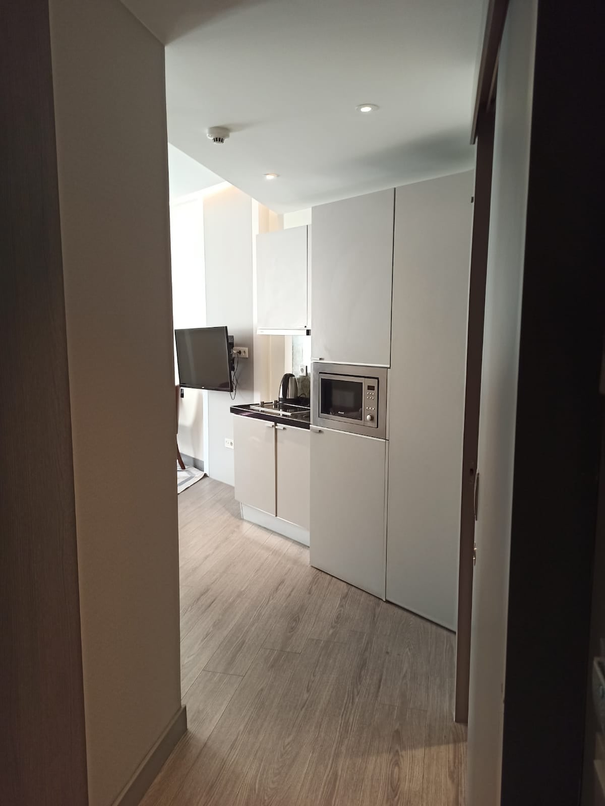 Unser Zimmer ist luxuriös, modern und sorgfältig gestaltet. Dieses Zimmer befindet sich in unserem Hotel und verfügt über ein großes Doppelbett, einen 43-Zoll-Smart-Fernseher und ein privates Badezimmer. Unser Zimmer verfügt über eine kleine Küche mit einem Minikühlschrank und kleinen Küchenutensilien. Unser Zimmer befindet sich im 3. Stock. Es gibt eine 24-Stunden-Kamera und ein Sicherheitssystem. Die Außentür des Gebäudes ist speziell codiert und geschützt. Unser Zimmer bietet Platz für 2 Personen.