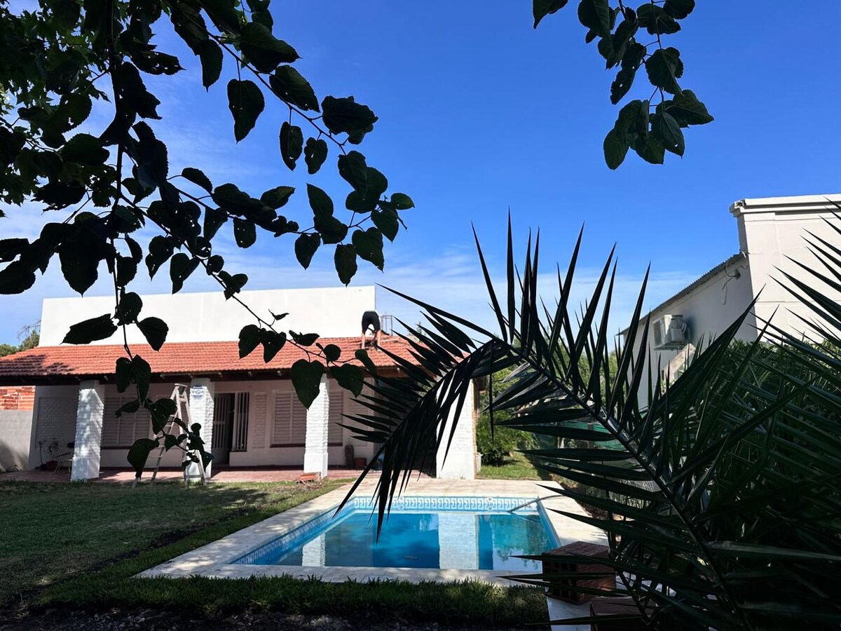 Relajate en este alojamiento único y tranquilo. Ideal para contactar con la naturaleza. Alejado de los ruidos de la ciudad pero con cercanía a la misma. Solo disfrute y relax. Con las comodidades y el confort necesarios para una estadía inolvidable. Podés disfrutar del verde característico de nuestra zona con un parque cuidado en todos sus detalles. Piscina habilitada de octubre a marzo inclusive. Ambientes muy luminosos q conectan visualmente con el verde exterior. Piscina de material 8 m x 3,5