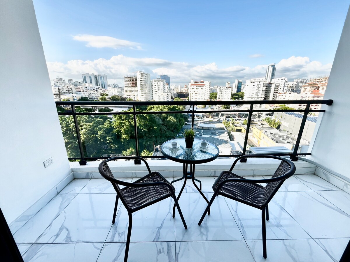 Willkommen in dieser brandneuen, luxuriösen Suite, perfekt im Herzen von Santo Domingo gelegen, nur wenige Gehminuten vom Centro Olímpico (Hauptkonzertstätten),Restaurants, Supermärkten, Banken und Bäckereien entfernt. Diese EINZIGARTIGE Suite bietet einen einzigartigen Blick, unübertroffen im Gebäude, eine voll ausgestattete Küche, ein geräumiges Schlafzimmer und ein modernes Badezimmer. Auch wenn es kein separates Wohnzimmer gibt, maximiert das offene Layout Komfort und Funktionalität. Ideal für Alleinreisende oder Paare, die einen perfekten Aufenthalt suchen!