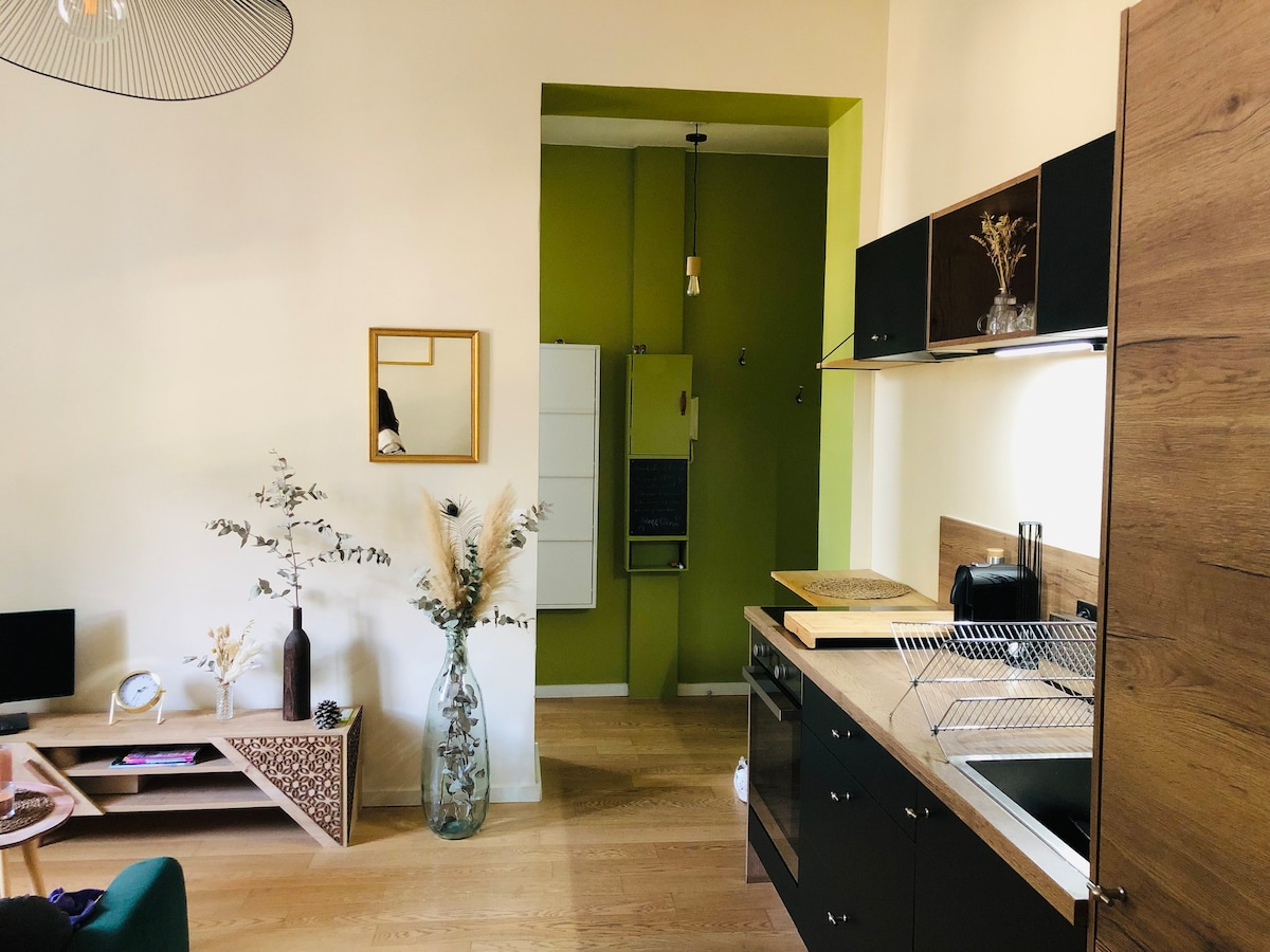 Wir sind Annabelle und Bixente, leidenschaftlich für das Gastgewerbe und seit 10 Jahren verliebt! Wir schlagen dir unsere schöne Wohnung von 53m ² vor, die sich im Stadtzentrum mit einem Balkon mit Blick auf die Sorgue befindet. Zu deiner Verfügung: 2 Schlafzimmer ( 2. Zimmer in Option, 3 Pers.), 1 großes Badezimmer und 1 Küche im Wohnzimmer geöffnet. All das in einem Altbau-Gebäude, aktualisiert von Annabelle. Am Fuße des Hauses findest du Restaurants, Bars, Geschäfte. Willkommen bei uns zu Hause!