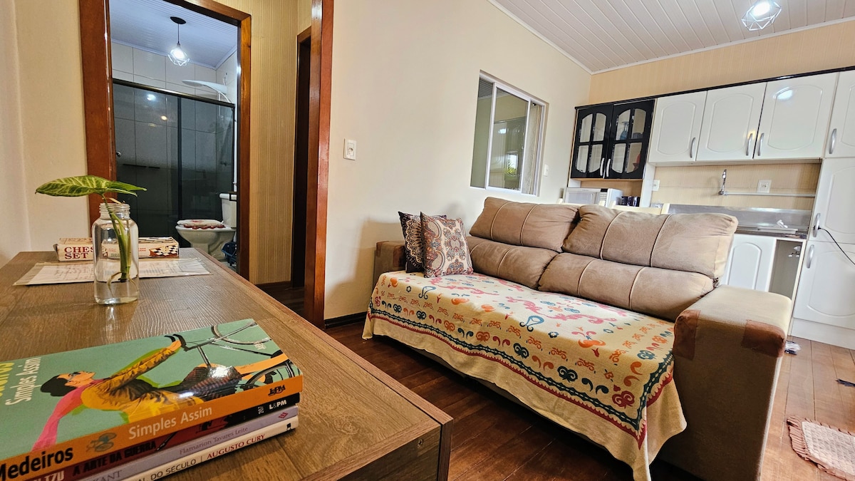 🏙️ Aproveite o melhor da vida urbana neste apartamento moderno de 1 dormitório, confortável e bem equipado, localizado no centro de Erechim, perto de tudo o que você precisa! 🛏️ O espaço * Dormitório com cama confortável * Sala de estar ideal para relaxar ou trabalhar * Cozinha completa com utensílios, geladeira, fogão e micro-ondas * Banheiro moderno * Wi-Fi de alta velocidade * Ar-condicionado * Smart TV Ideal para quem viaja a trabalho, lazer ou precisa de um lugar prático.