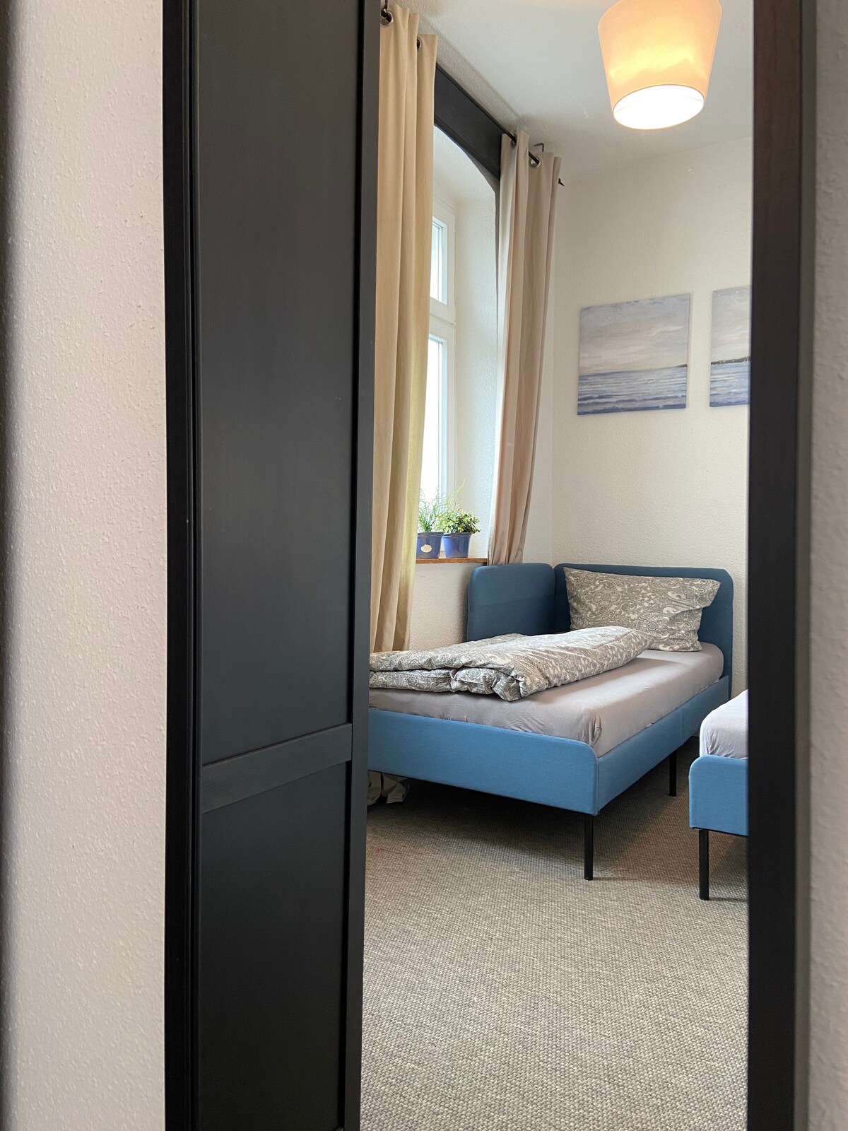 Sonnige komplett sanierte 4 Zimmer Wohnung im Erfurter Malerviertel. Nur ca. 7 Minuten zu Fuß vom Hauptbahnhof entfernt in ruhiger Lage. Öffentliche Verkehrsmittel in unmittelbarer Nähe und in fußläufiger Entfernung zur Altstadt. In ca. 50m Entfernung gibt es einen Bäcker und in ca. 200m Entfernung einen Supermarkt. Parkplätze stehen kostenfrei auf der öffentlichen Straße direkt bei der Unterkunft zur Verfügung.