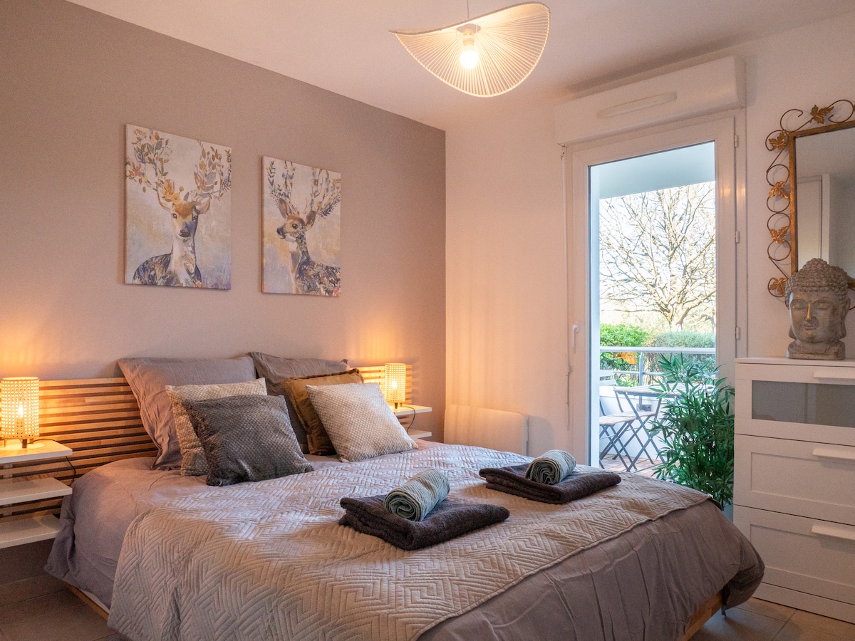 Détendez-vous dans ce logement idéalement situé à 5 min en voiture de la gare de Quimper. Cet appartement lumineux offre tout le confort pour un séjour agréable. Profitez de la terrasse exposée sud-ouest et du jeu de fléchettes pour des moments conviviaux. La chambre avec lit queen-size et literie de qualité (linge fourni) garantit une excellente nuit. Une place de parking est incluse dans la résidence sécurisée. Note : des travaux ont lieu en face du lundi au vendredi de 8h à 17h.