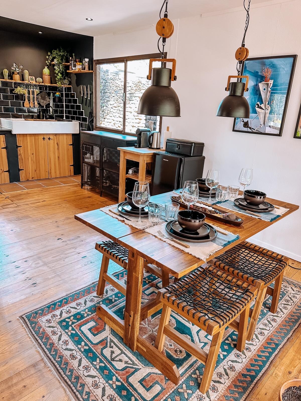 Verbinde dich in dieser unvergesslichen Zuflucht wieder mit der Natur. Unsere 2 Tiny Houses befinden sich inmitten landwirtschaftlicher Landschaften auf einer Pferdefarm 400 Meter von einem der besten Surfstrände in der Umgebung entfernt. Die Containereinheit ist nur für dich privat. Der Eingang erfolgt über den Nebenraum. Dieser Wintergarten sowie Waschküche, Garten und Backoffice / Stauraum wird mit der anderen Einheit (2pax) geteilt Unsere lokale Gemeinschaft bietet auch eine kleine lokale Strandbar, eine Pizzeria und eine Mikrobrauerei & ein Hamburger-Restaurant.