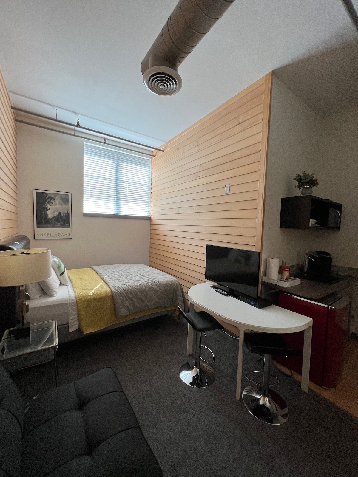 Finde Gelassenheit in Cedar Haven! Egal, ob du Ski fährst, wanderst oder einfach nur entspannst, diese gemütliche Boutique-Hotel-Suite-Hütte bietet Komfort im Hotelstil und eine entspannende Atmosphäre. Minuten vom Song & Labrador Mountain und Syrakus entfernt. Buche jetzt deinen perfekten Kurzurlaub! Jede Unterkunft verfügt über eine Suite mit einem großen Badezimmer, einer ebenerdigen Dusche, einem Schreibtisch, einem Minikühlschrank und einer Kaffeemaschine. Diese Suite verfügt über ein komplettes ADA-konformes Layout mit einer rollbaren Dusche. Suite 1 kann optional über eine Kommunikationstür mit Suite 2 verbunden werden.