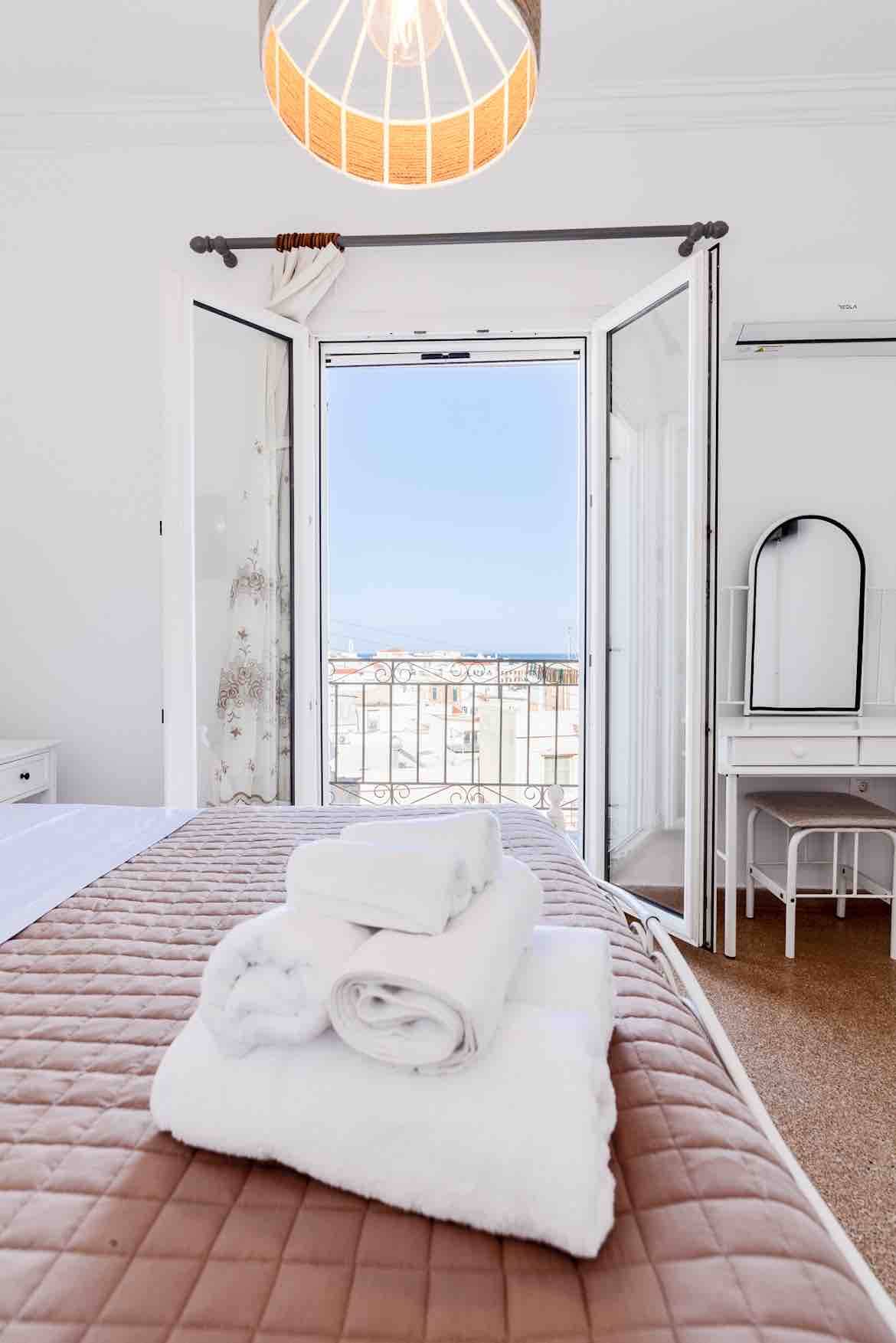 Wake up in this charming, contemporary bright apartment located in the heart of Ermoupolis. This newly renovated, luxurious flat is well-equipped and situated in the vibrant center of Ermoupolis, Syros. Just 100 meters from amazing restaurants, cafes, and bars, it’s also a short walk from Miaouli Square, the Ermoupolis harbor, and the waterfront.