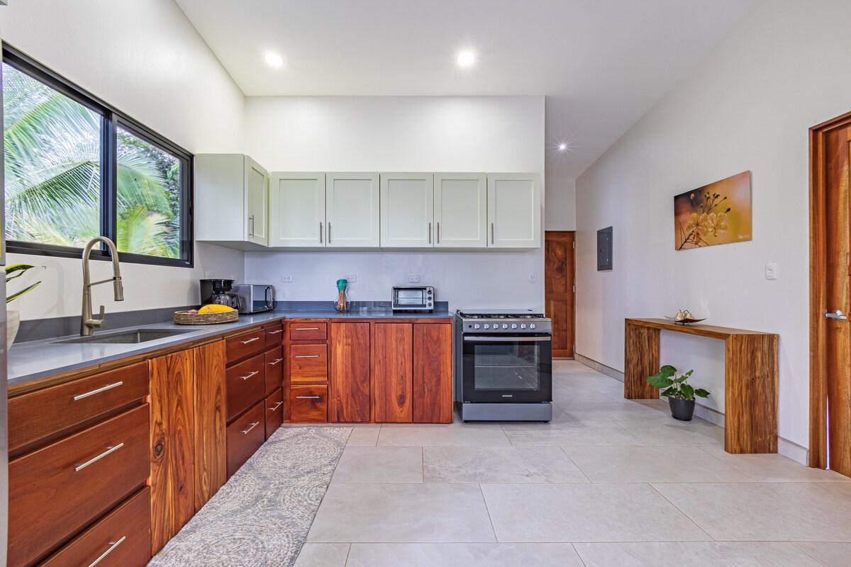 Schlafe ein und erwache mit dem sanften Plätschern eines nahegelegenen Regenwaldbachs, den fernen Meereswellen und tropischen Vögeln in prächtigen Baumkronen. Dieses moderne, aber gemütliche 1-Schlafzimmer-/1-Badezimmer-Apartment verfügt über alle Küchenutensilien, einen Grill und ein luxuriöses Bad mit Dschungelblick und Doppelduschköpfen. Tritt nach draußen und in den Infinity-Pool mit anpassbarer Beleuchtung und Meerblick. Affen, Faultiere, Tukane, Nasenbären und Wasserfälle gibt es reichlich. Umgib dich mit ruhiger, lebendiger, natürlicher Schönheit.