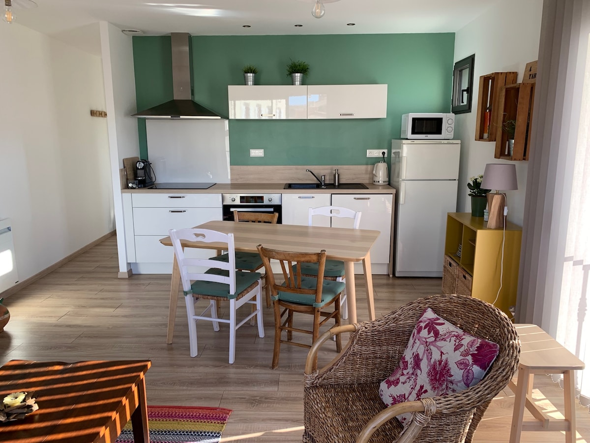 Kleine Wohnung im Erdgeschoss unseres Hauses, völlig unabhängig, bestehend aus einem großen hellen Raum mit einem Schlafsofa für 2 Personen , einer Küchenzeile, einem Schlafzimmer von 14 m2 mit 1 Doppelbett und 1 Einzelbett, in dem ich ein Kinderbett, ein Badezimmer und ein separates WC hinzufügen kann. Es ist möglich, die Außenseite zu genießen:Gartenterrasse mit Tisch und 6 Stühlen, Hof für das Auto.