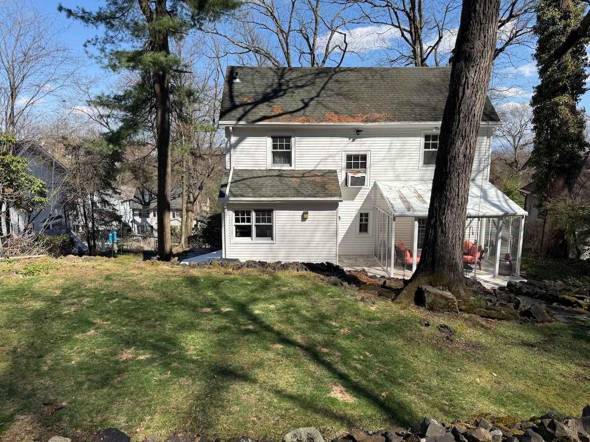 Entspanne dich in diesem einzigartigen und ruhigen Kurzurlaub im Anwesen von Montclair. Auf zwei Etagen hast du jede Menge Platz zum Entspannen in diesem wunderschön renovierten Gästehaus. Der Außenbereich umfasst eine geräumige Terrasse mit einem Holzofen. Dieses einzigartige Haus befindet sich auf einem 1,2 Hektar großen Grundstück mit Blick auf NYC vom Schlafzimmer (!) sowie Zugang zu einem privaten Har-Tru-Tennisplatz. Tennisschläger und Bälle stehen zur Verfügung. (Tennisplatz kann in den Wintermonaten nicht bespielbar sein.)