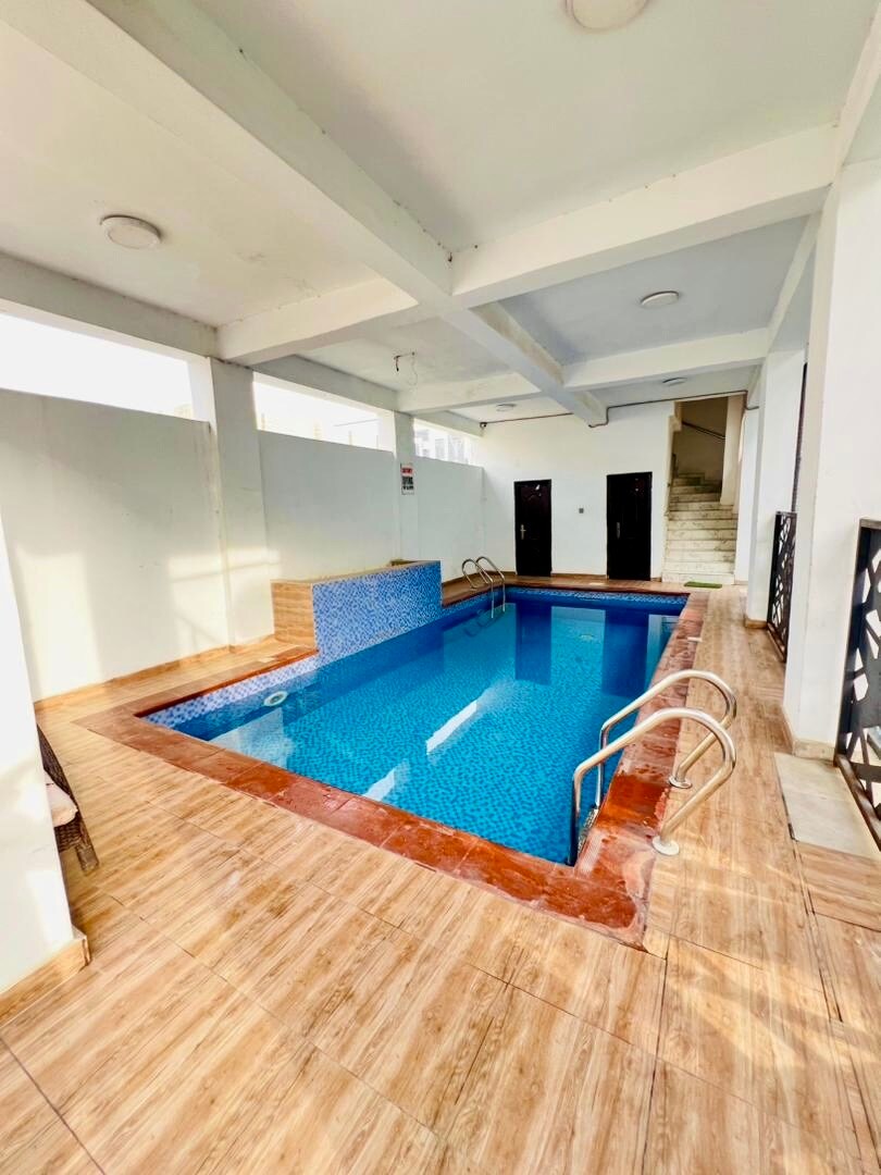 Stylish 4-Bedroom Home – Perfect for Families Spacious, modern home with airy living and dining areas, a fully equipped kitchen, and a furnished double balcony. Enjoy home cleaning, DSTV, Netflix, Wi-Fi, 24/7 power, and guaranteed security. Relax by the swimming pool in a safe, welcoming environment — ideal for family getaways or group stays. Comfort, convenience, and style all in one place!