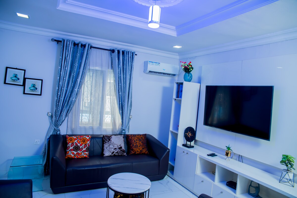 Genieße ein stilvolles Erlebnis in dieser zentral gelegenen und sicheren Unterkunft im Herzen von Lekki 1.