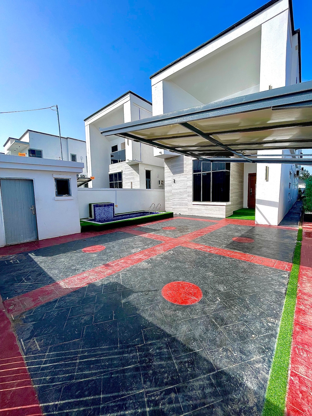 Luxuriöse Designer-Villa – Lekki Phase 1 Erlebe Eleganz und Komfort in dieser geräumigen, privaten Villa in Lekki Phase 1. Die Lounge auf dem Dach verfügt über eine Bar im Freien, einen Pavillon auf der Dachterrasse, einen Grill und einen atemberaubenden Blick auf den Sonnenuntergang, perfekt für Entspannung und Unterhaltung. Genieße vollen Zugang zur gesamten Villa, einschließlich eines hochmodernen privaten Kinos, stilvoll eingerichteten Räume und hochwertigen Annehmlichkeiten, von den Schlafzimmern bis zur Dachterrasse mit Blick auf die Stadt.